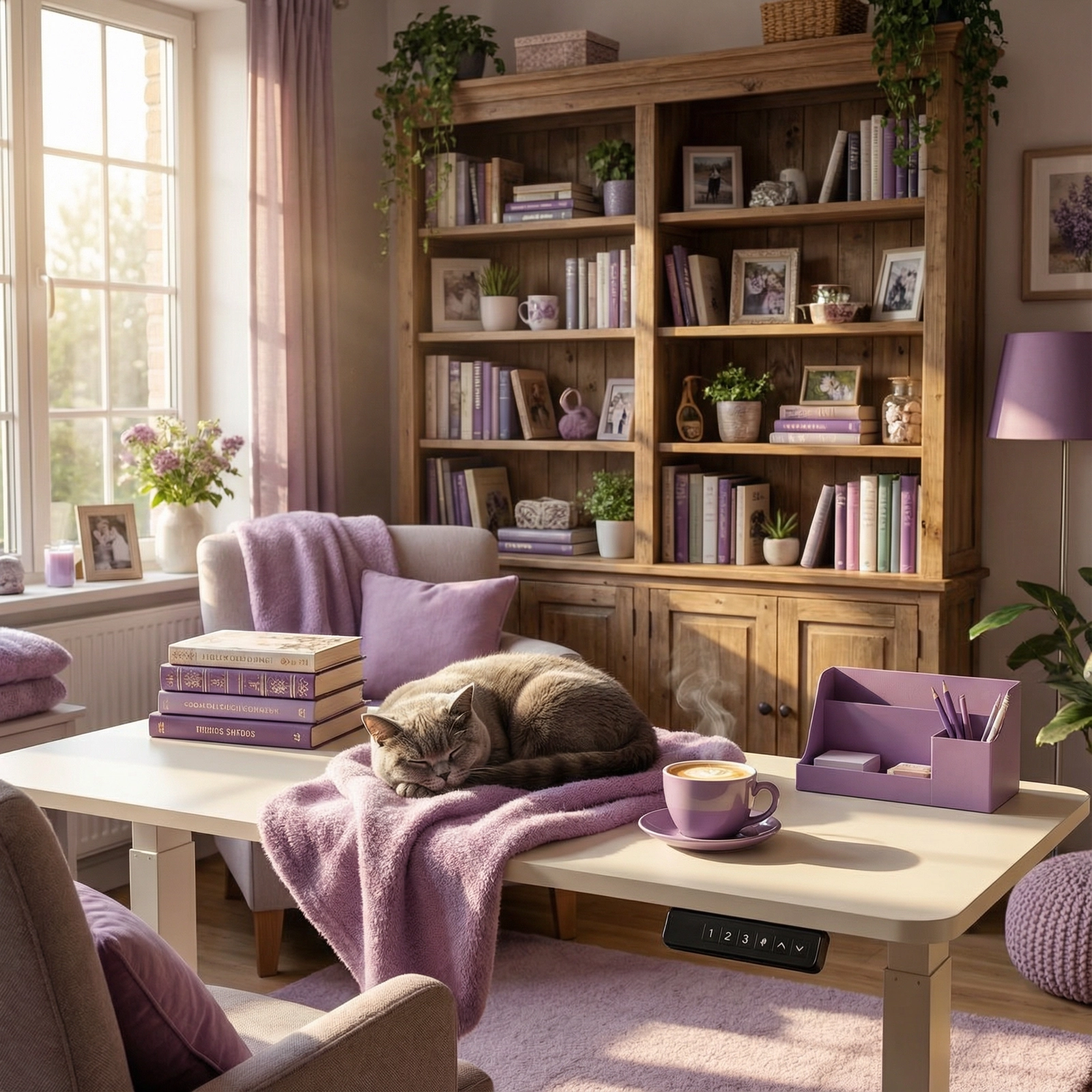 Blat 120x60 cm oferuje na tyle dużo miejsca, by wygodnie rozplanować monitor, laptop, klawiaturę, mysz i dokumenty, jednocześnie zachowując porządek. Jasna powierzchnia w odcieniu kości słoniowej ogranicza wizualny chaos i pomaga skupić się na zadaniach, niezależnie od tego, czy pracujesz w dedykowanym gabinecie, czy w wydzielonym kąciku w salonie.
