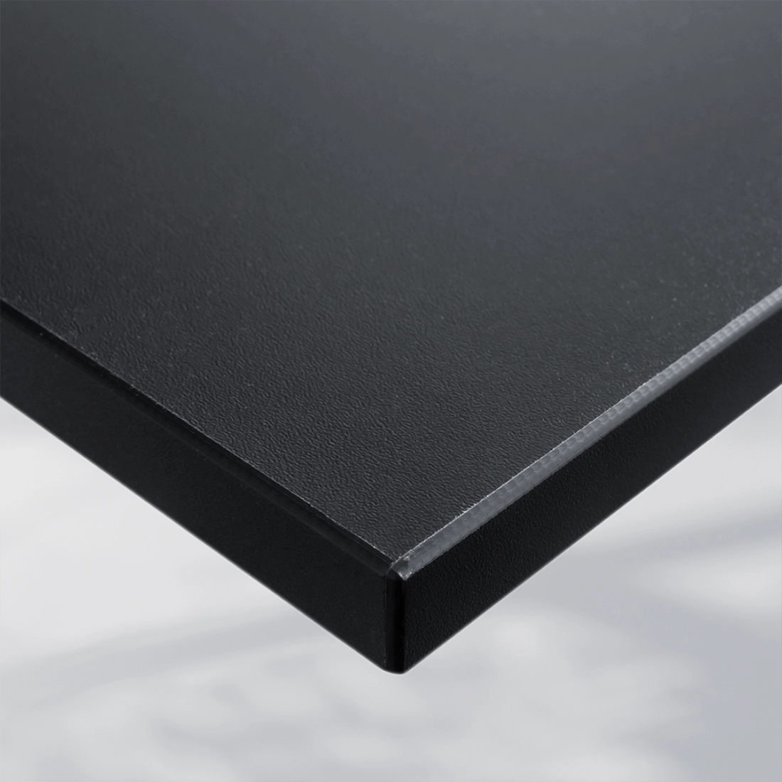 Blat w czarnym chropowatym dekorze wykonano z wysokiej jakości płyty obustronnie laminowanej o grubości 18 mm. Dzięki obrzeżom ABS jest odporny na uszkodzenia mechaniczne i zachowuje estetyczny wygląd przez długi czas.