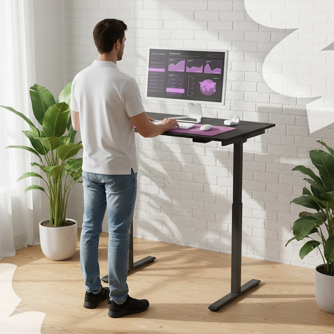 Praca na stojąco pozwala zachować naturalną krzywiznę kręgosłupa i zmniejsza napięcie mięśniowe. Dzięki