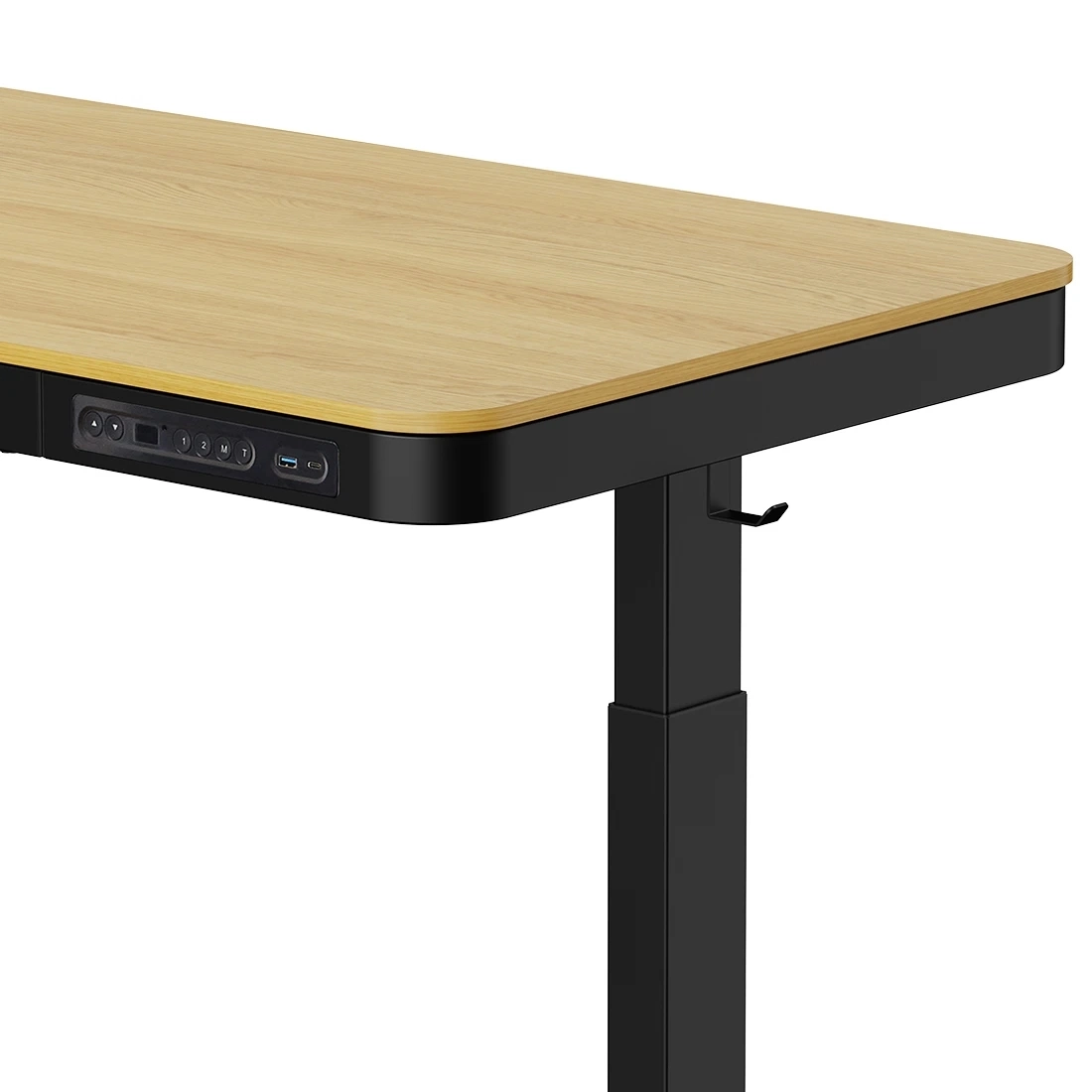 Biurko wyposażone jest w zaawansowany dotykowy kontroler, który umożliwia zapamiętanie ulubionych ustawień wysokości. Dzięki temu, jednym dotknięciem można szybko przestawić biurko do wcześniej zapamiętanych pozycji, co zwiększa wygodę użytkowania. Dodatkowo, kontroler posiada jedno wyjście USB-A, co ułatwia ładowanie urządzeń mobilnych bez potrzeby korzystania z dodatkowych ładowarek. To rozwiązanie pozwala na utrzymanie porządku na blacie i łatwy dostęp do źródła zasilania dla wszystkich potrzebnych urządzeń.