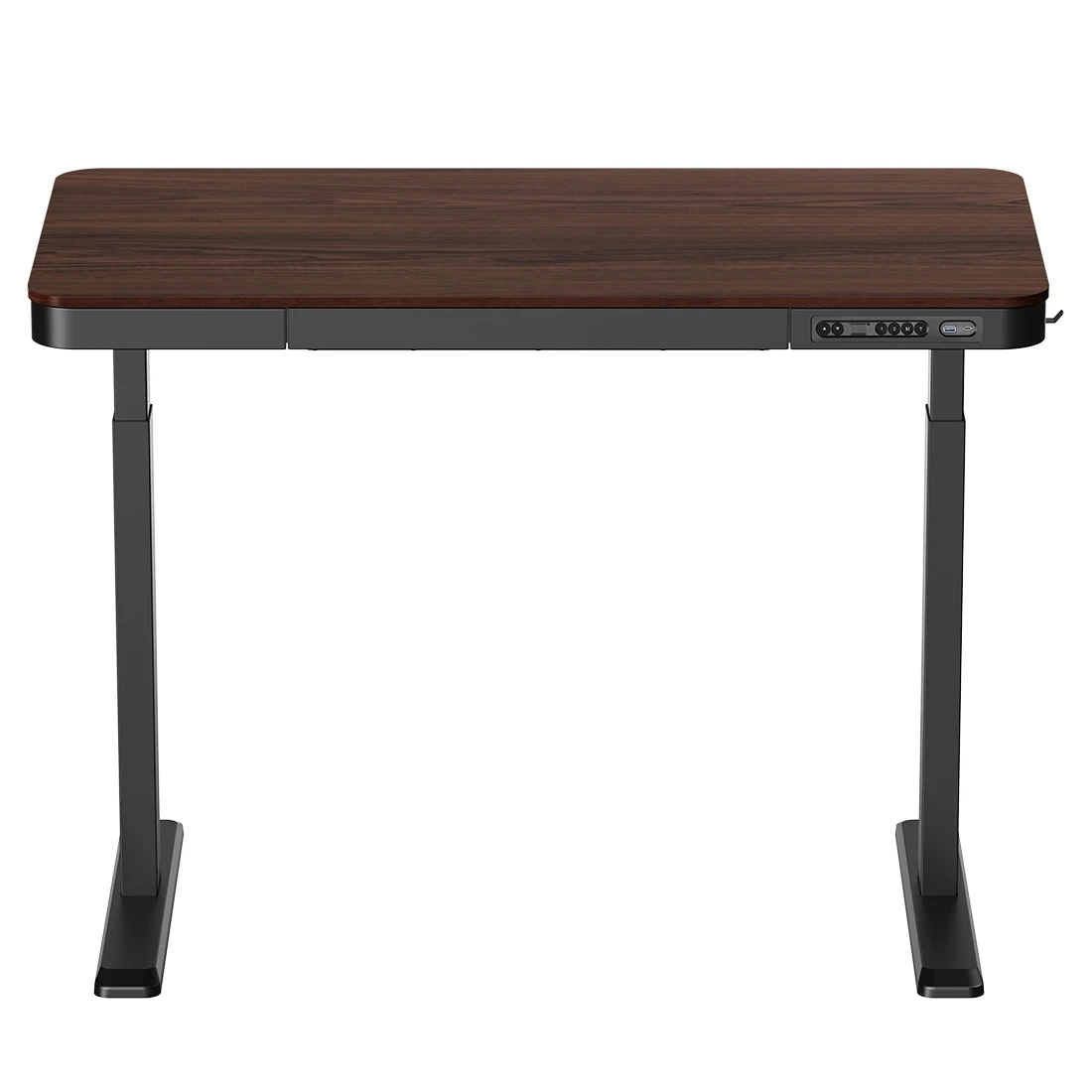 • Biurko z regulacją wysokości elektryczne w zakresie od 72 do 120 cm, które pozwoli Ci pracować na stojąco lub siedząco. Orzech 118 x 60 cm, Czarny stelaż. Posiada szufladę i ładowarkę USB-A, USB-C, indukcyjną (w blacie).
