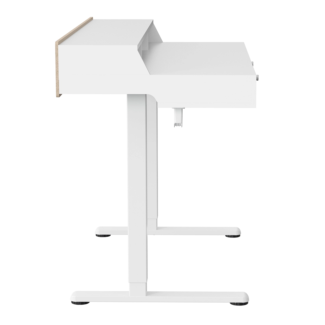 • Biurko Spacetronik SPEF141WL_120_60 z elektryczną regulacją wysokości, podwójnym blatem i wbudowaną szufladą. Pojedynczy silnik zapewnia cichą pracę, a pamięć ustawień i system antykolizyjny zwiększają komfort i bezpieczeństwo.