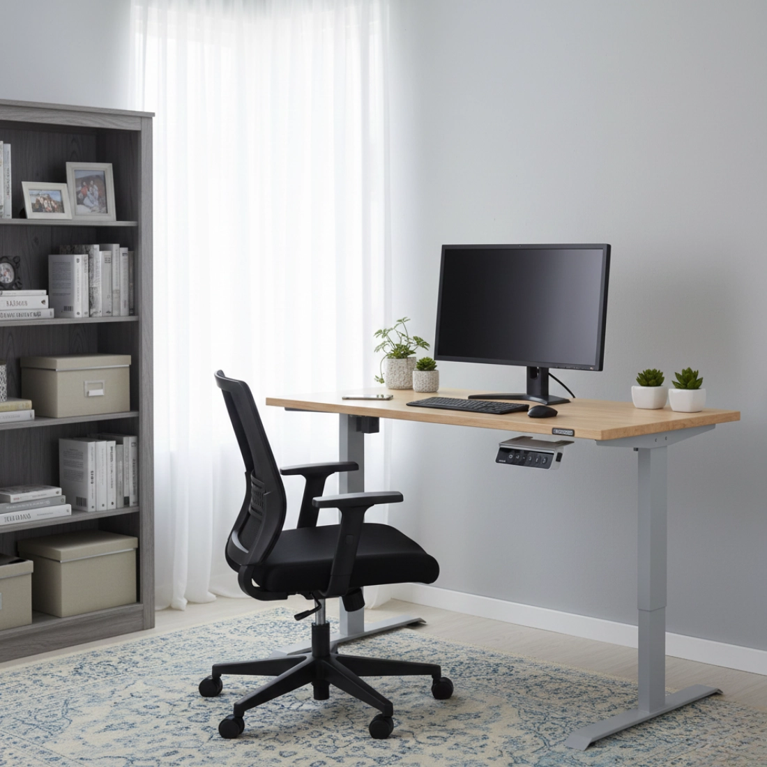 Zakres regulacji 720–1200 mm umożliwia wygodne ustawienie biurka zarówno do pracy siedzącej, jak i stojącej. Płynna praca napędu utrzymuje stałą prędkość regulacji, a wbudowane zabezpieczenia chronią mechanizm przed przegrzaniem i przeciążeniem.