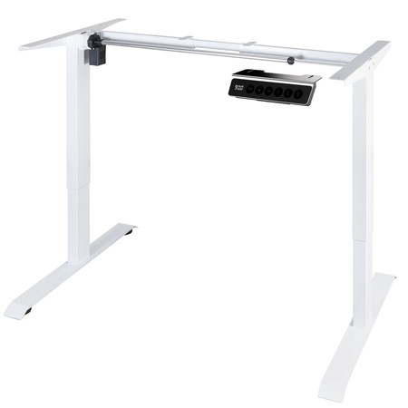 • Ergonomia w domu i pracy. Elektryczny stelaż wyposażony w jeden silnik z regulacją wysokości blatu w zakresie 720 - 1200 mm. Nośność 80 kg. Zapamiętywanie pozycji, system antykolizyjny. W kolorze białym.