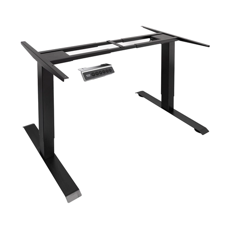 Spacetronik SPE-221 w kolorze czarnym to stelaż regulowany elektrycznie, na którym zbudujesz prawdziwe ergonomiczne biurko z elektryczną regulacją. Rama elektryczna posiada dwa silniki zapewniające szybką i płynną zmianę wysokości blatu. Regulacja daje poczucie komfortu i możliwość dopasowania indywidualnych potrzeb pracownika, a także może wpłynąć na efektywność pracy. Elektrycznie regulowane biurko umożliwia codzienną pracę w pozycji stojącej, co korzystnie wpływa na, chociażby krążenie, czy też na mniejsze ryzyko przybrania dodatkowych kilogramów. Stojąc, możemy także zdecydowanie łatwiej utrzymać prawidłową postawę ciała - za co podziękuje nam przede wszystkim nasz kręgosłup.