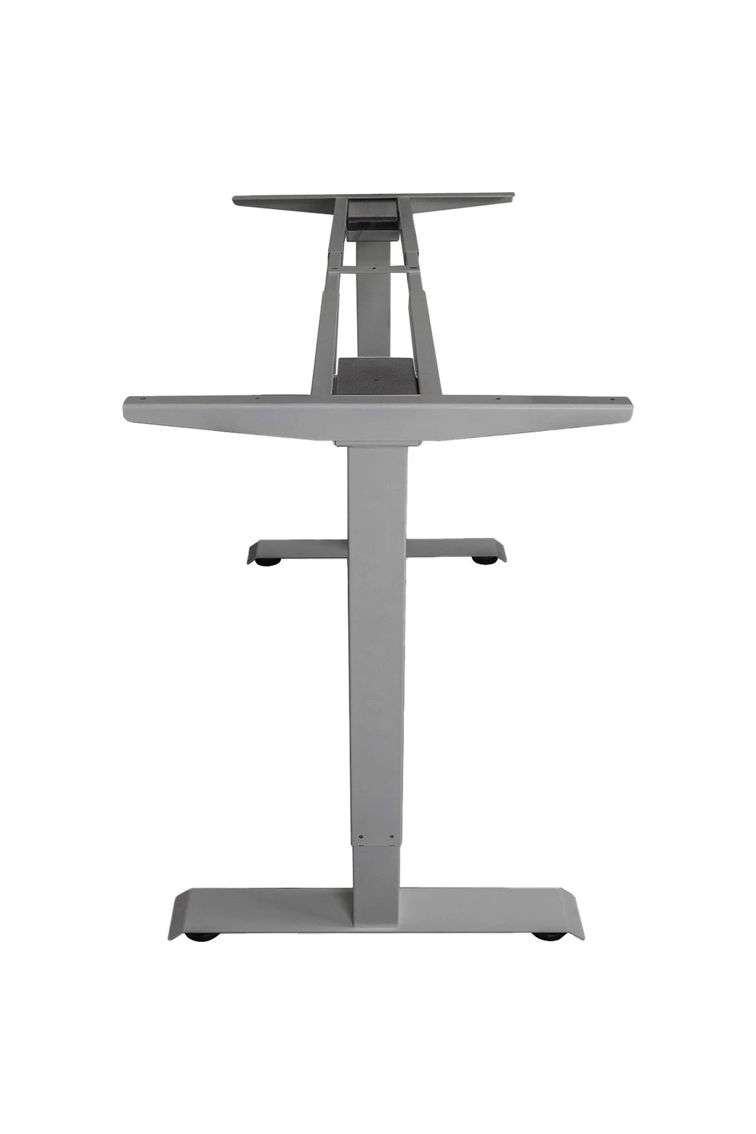 Dzięki wykorzystaniu 2 segmentów podnoszących stelaż, jest on stabilny i pozwala podnosić biurko na wysokość aż 118cm. Dzięki temu można pracować komfortowo zarówno w pozycji stojącej jak i siedzącej. Stelaż posiada prostokątny kształty kolumn, przez co sprawdzi się w każdych wnętrzach, również w tych nowoczesnych. Stopa również jest elegancka i posiada regulowane nóżki, dzięki czemu możesz zniwelować wszelkie nierówności podłogi.