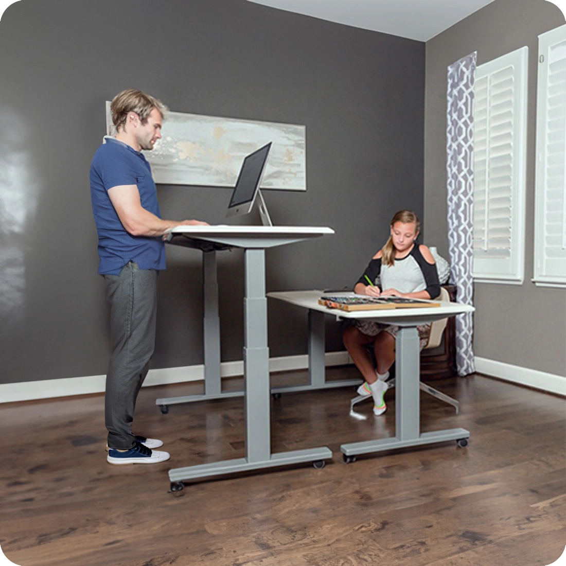 Pracuj na stojąco lub siedząco dzięki regulacji wysokości stelaża biurkowego
