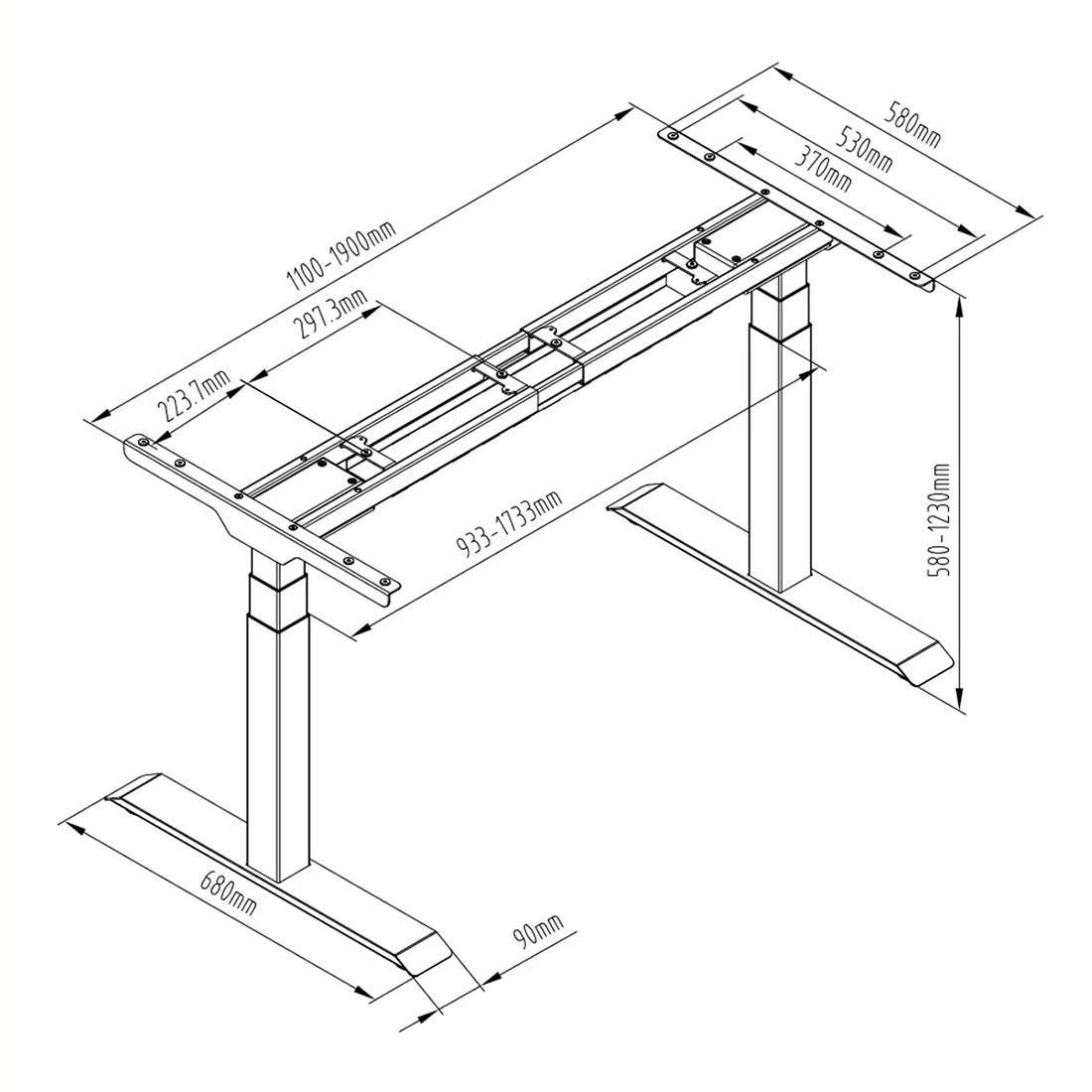 Stelaże elektryczne są często wyposażone w regulację wertykalną. Jednak wszechstronna rama elektrycznego stelaża oprócz regulacji góra/dół pozwala również na ręczną regulację horyzontalną (w bok). W łatwy sposób rozszerzysz konstrukcję pod wymiar swojego blatu biurka. Sugerowane wymiary blatu: 1200-2000 mm (szerokość), 600-800 mm (głębokość). Stwórz swoje wymarzone stanowisko pracy już dzisiaj!