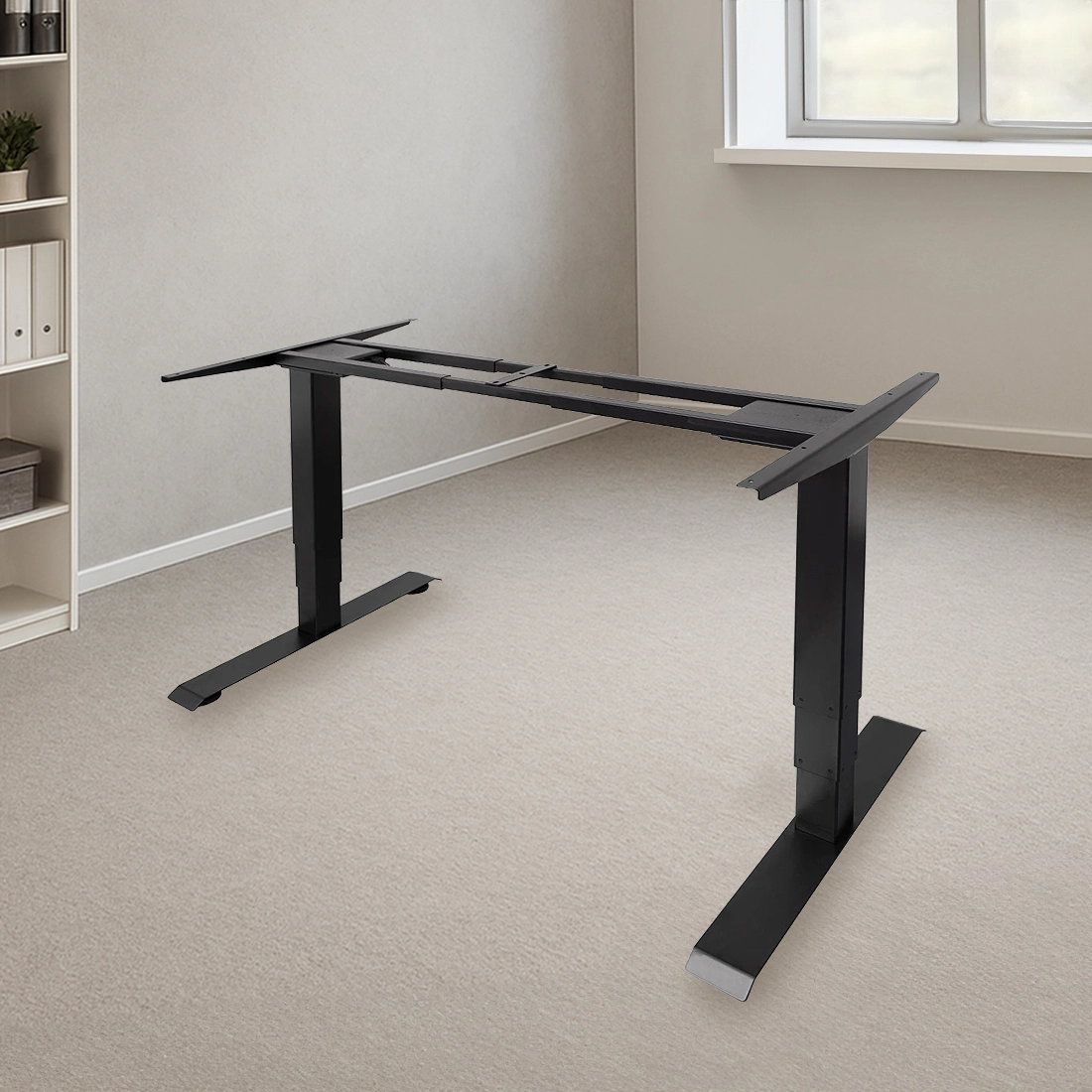 Dzięki wykorzystaniu 3 segmentów podnoszących stelaż, jest on stabilny i pozwala podnosić biurko na wysokość aż 125cm. Dzięki temu można pracować komfortowo zarówno w pozycji stojącej jak i siedzącej. Stelaż posiada prostokątny kształty kolumn, przez co sprawdzi się w każdych wnętrzach, również w tych nowoczesnych. Stopa również jest elegancka i posiada regulowane nóżki, dzięki czemu możesz zniwelować wszelkie nierówności podłogi.