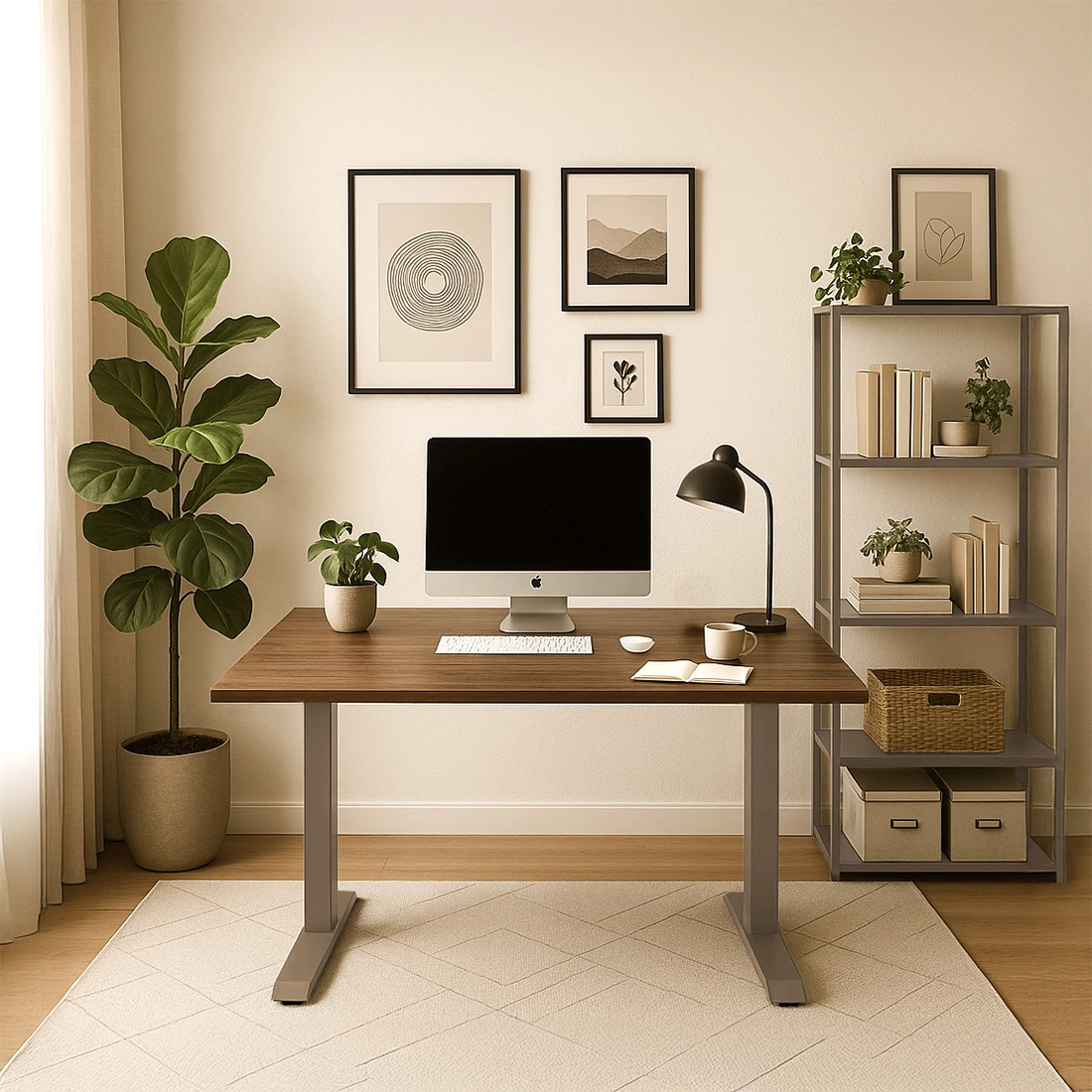 • Stelaż biurkowy z dwoma silnikami, który pozwala stworzyć ergonomiczne biurko i pracować zarówno w pozycji stojącej, jak i siedzącej. Reguluj wysokość blatu w zakresie od 62,5 - 127,5 cm. Nośność biurka do 140 kg. Kontroler z OLED i RGB. RAL7006