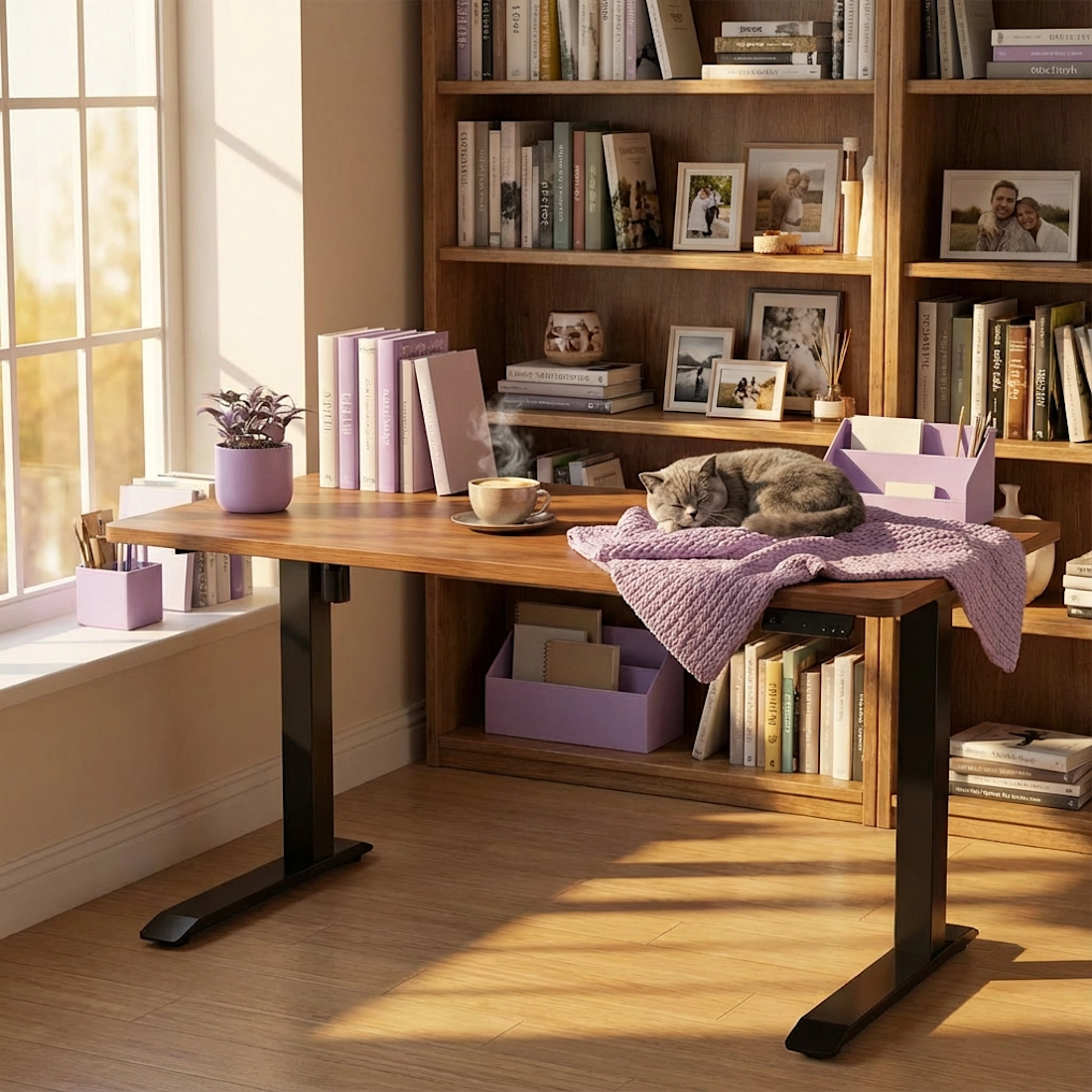 - Zawartość zestawu: Stelaż elektryczny (do montażu), kontroler, zasilacz, okablowanie, instrukcja obsługi, elementy montażowe. (Zestaw nie zawiera blatu).