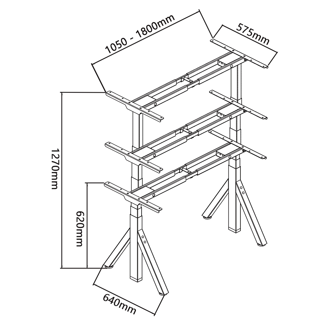 - Regulacja wysokości: Zakres od 620 do 1270 mm pozwala dopasować biurko do każdej sylwetki i pozycji pracy.