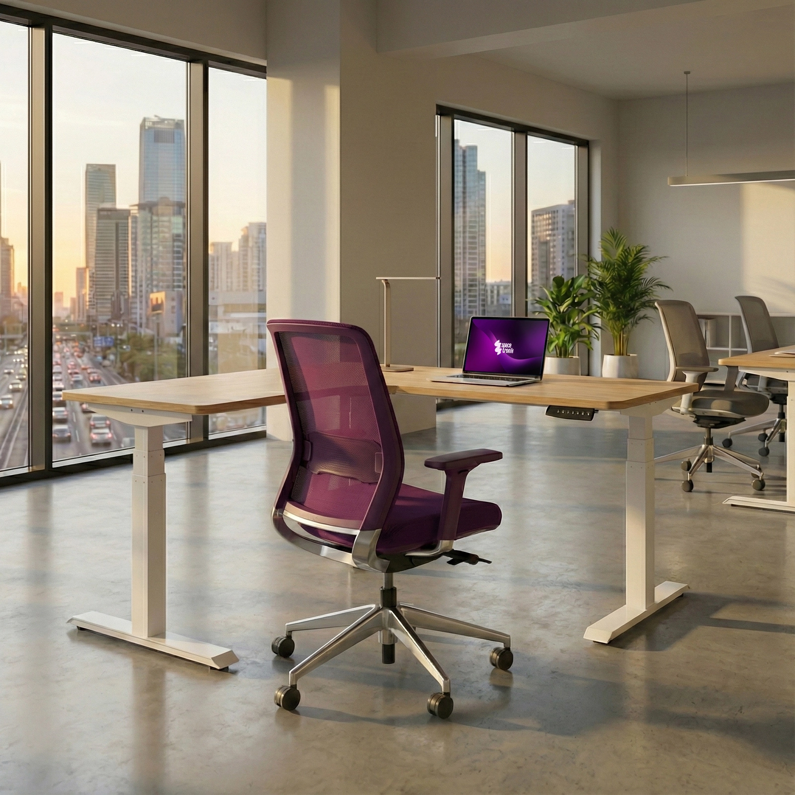 Potrójny system silników – Gwarantuje udźwig do 150 kg oraz stabilną pracę kolumn nawet przy maksymalnym obciążeniu blatu.