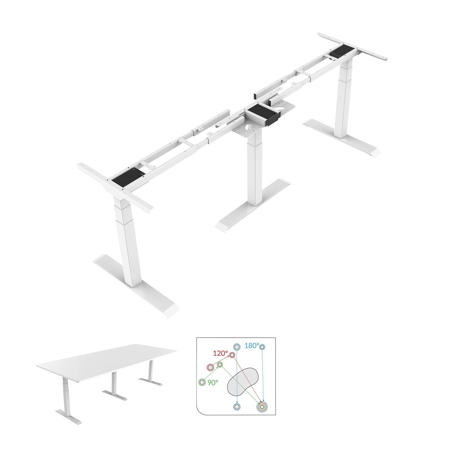 • Stelaż do biurka elektrycznego z możliwością ustawienia w 3 różnych pozycjach: 90°, 120° lub 180°. Pracuj na stojąco lub siedząco i przekształć swoje dotychczasowe stanowisko w ergonomiczne. Trzy silniki. Nośność 150 kg. Kolor biały.