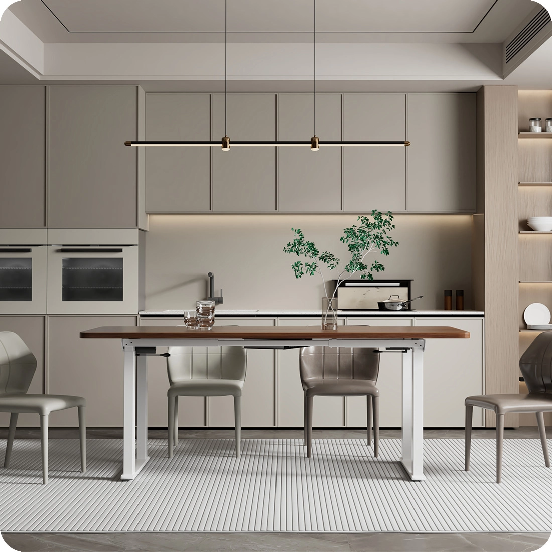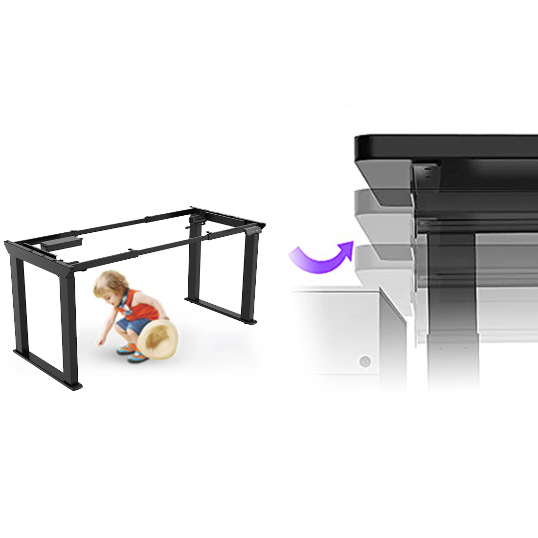 • Elektryczny stelaż do stołu lub biurka. Zakres regulacji wysokości 730 -1230 mm i szerokości 1200 – 2000 mm. System antykolizyjny i dwa silniki. Idealny do jadalni, biura czy też sali konferencyjnej.