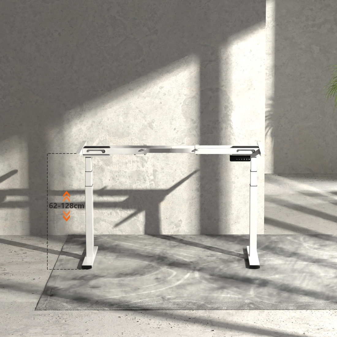 Zbuduj nowoczesne, zdrowe stanowisko pracy ze stelażem SPE237W. Elektryczna regulacja wysokości 62–128 cm, kontroler z pamięcią 3 pozycji i regulowana szerokość 95–160 cm zapewniają pełną personalizację biurka w domu i biurze. Matowa biel i stalowa konstrukcja łączą minimalizm z trwałością.