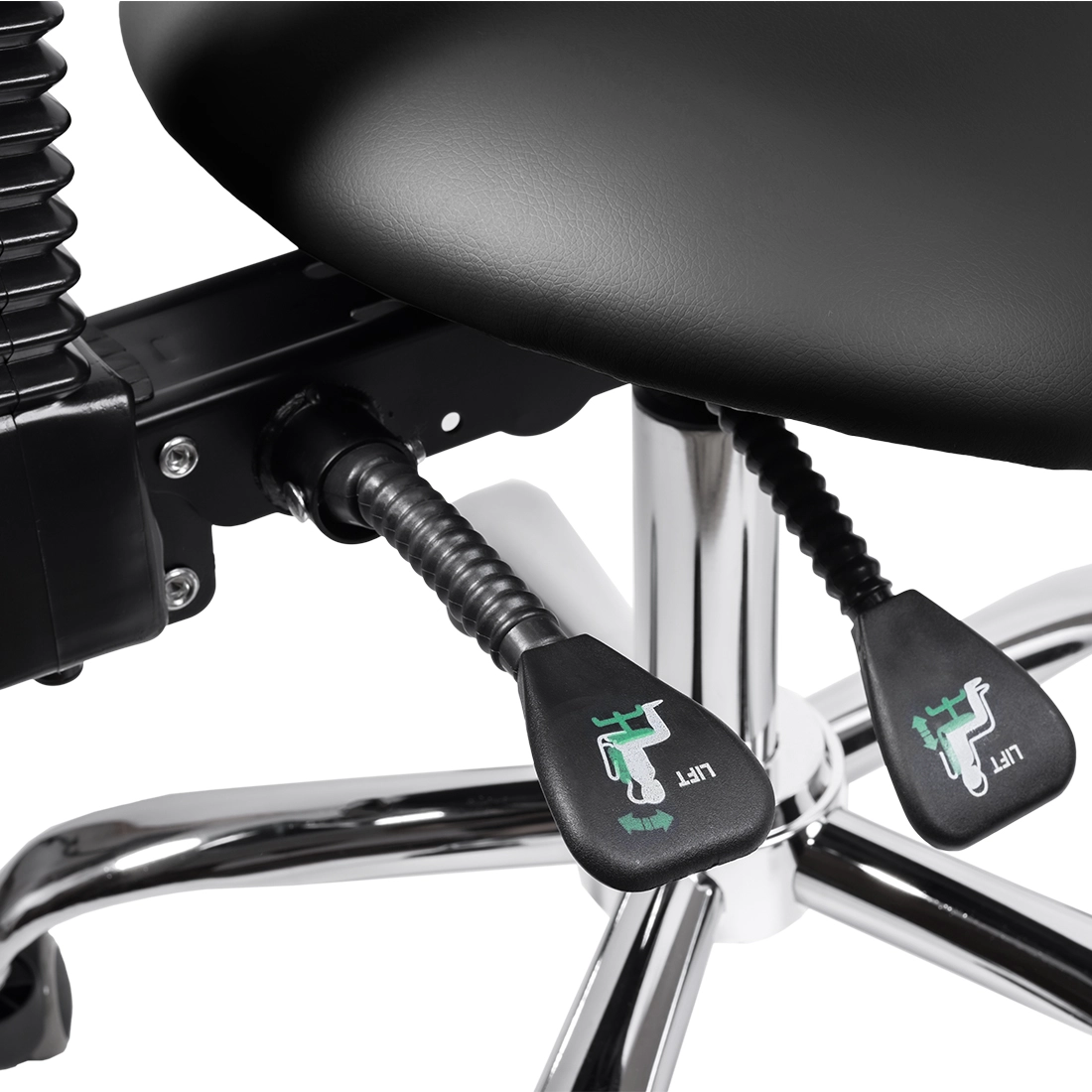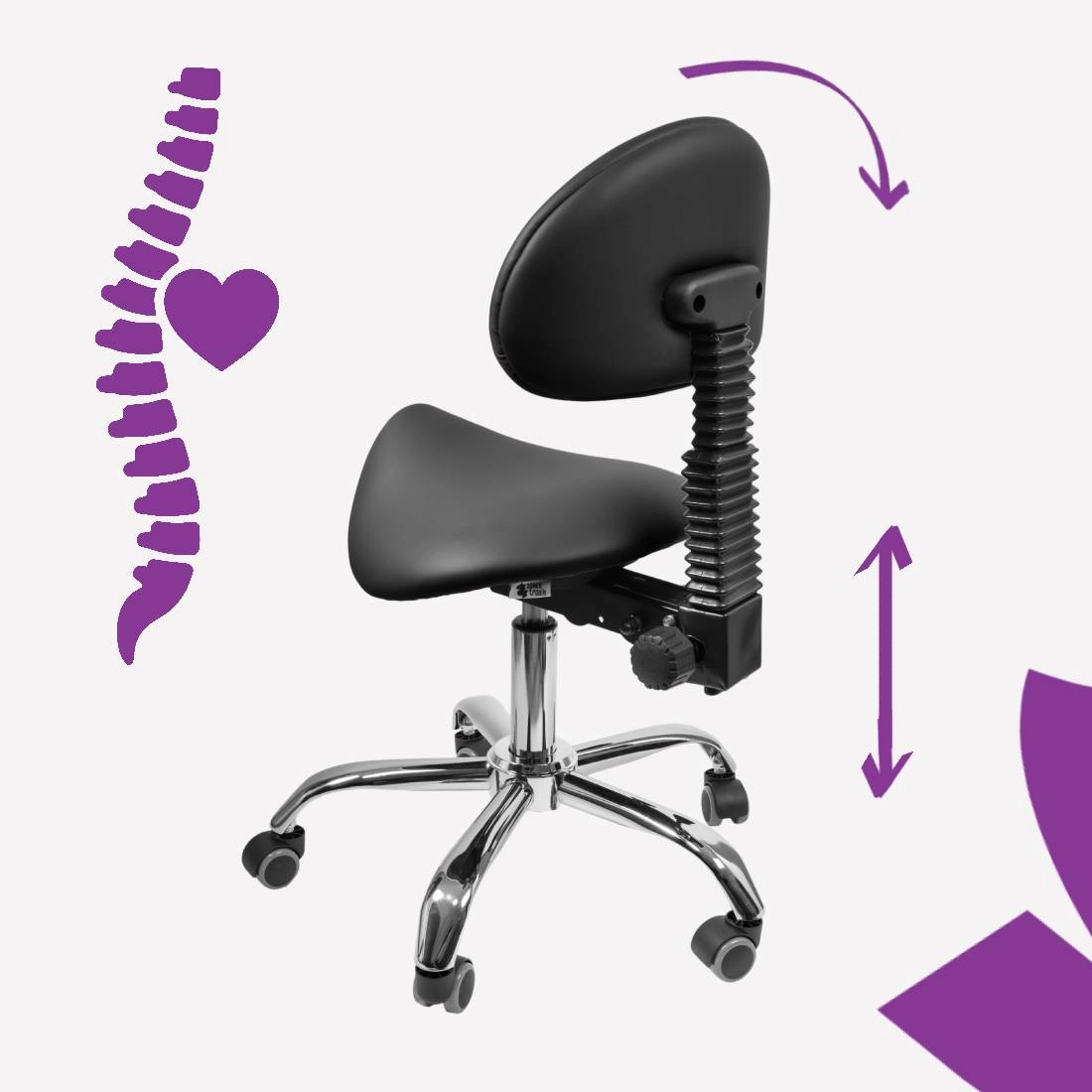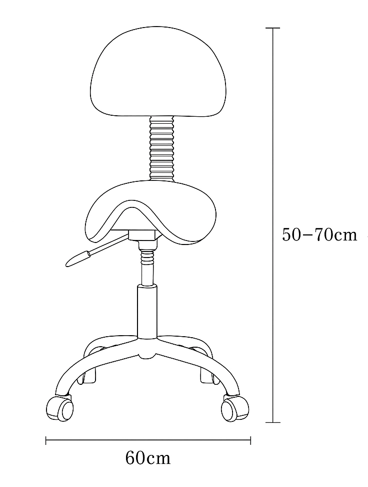 Siodłowy kształt siedziska wymusza aktywną, dynamiczną postawę – miednica ustawia się w pozycji neutralnej, a kręgosłup naturalnie utrzymuje krzywizny. Taka pozycja zmniejsza ucisk na kręgi lędźwiowe, poprawia krążenie i sprzyja dłuższej pracy bez bólu pleców. To ergonomiczne rozwiązanie zyskało uznanie w branży kosmetycznej, stomatologicznej i biurowej.