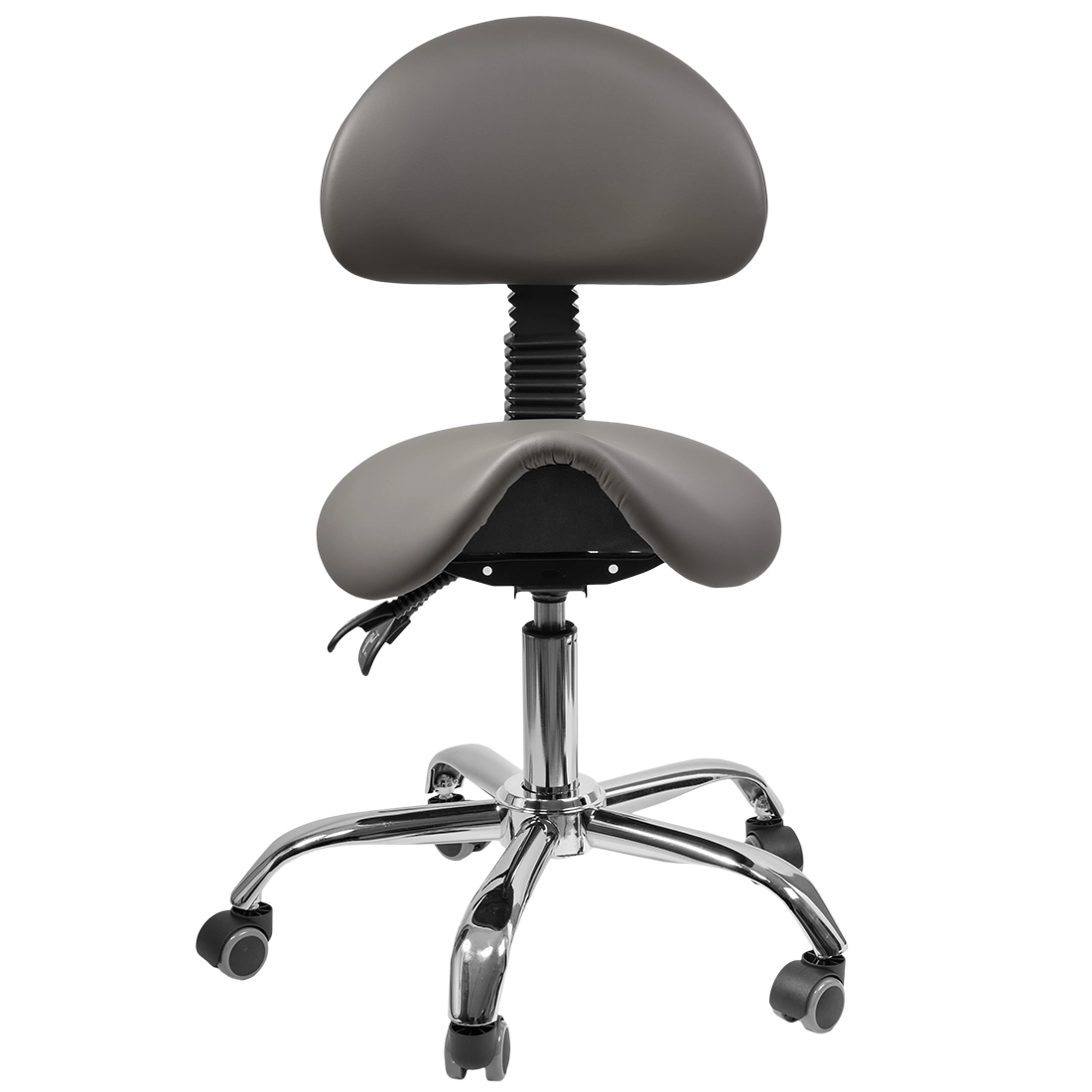 Hoker biurowy z oparciem Spacetronik SPC-SELLA-11 - szary fotel na kółkach z siedziskiem typu siodło