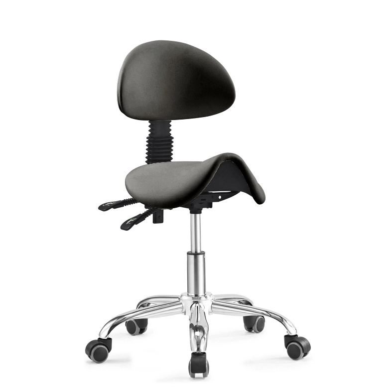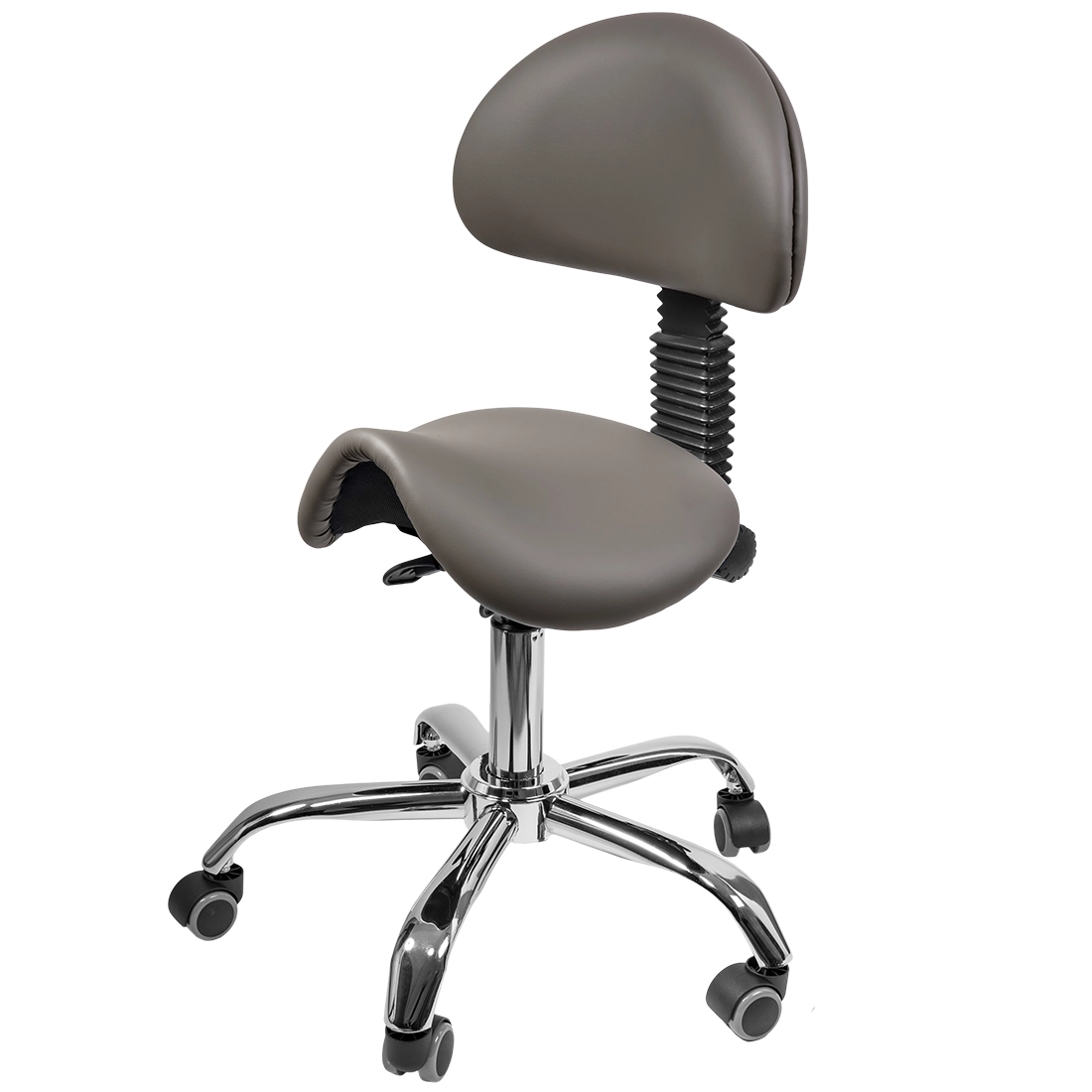 Kształt siodłowy wywodzi się z siodeł jeździeckich - zaprojektowany tak, by wymuszać otwartą pozycję bioder i prosty kręgosłup. Siedzisko tego typu sprzyja aktywnemu siedzeniu: miednica ustawia się naturalnie, wymuszając otwarty kąt bioder (ok. 135°). Kręgosłup zachowuje fizjologiczną krzywiznę, a napięcie w odcinku lędźwiowym się zmniejsza. To rozwiązanie szczególnie polecane osobom pracującym wiele godzin przy biurku, w laboratoriach lub gabinetach kosmetycznych.