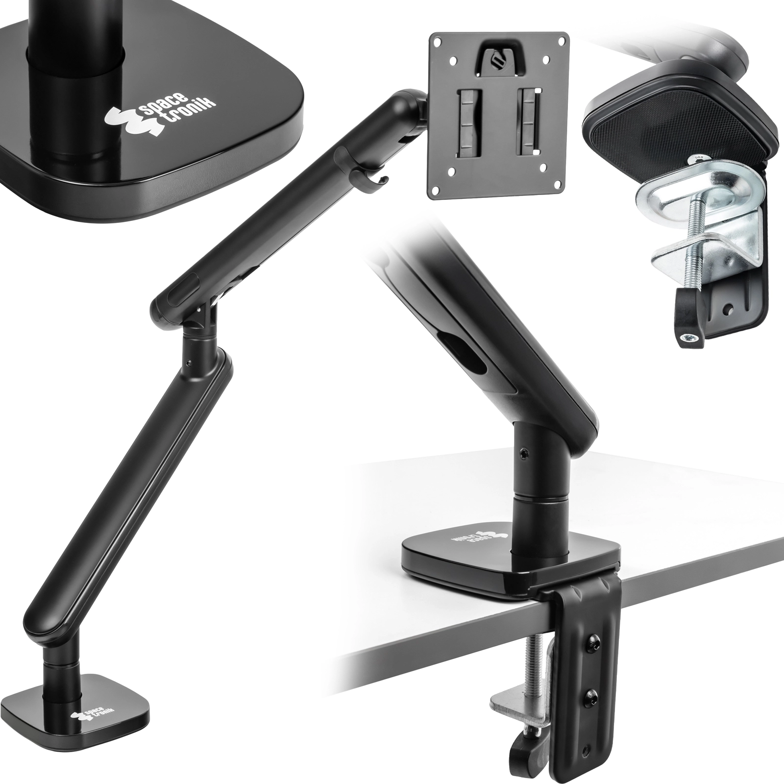 Zapomnij o plastikowych, chwiejnych konstrukcjach, które budzą wątpliwości co do bezpieczeństwa Twojego sprzętu. Korpus uchwytu SPAF110B został wykonany z wysokiej jakości stopu aluminium, co przekłada się na wysoką stabilność monitora o wadze od 2 do 9 kg. Dzięki temu możesz skupić się na pracy lub grze, bez irytujących drgań ekranu przy każdym ruchu myszką czy uderzeniu w klawiaturę. Matowe, czarne wykończenie nie tylko wygląda profesjonalnie, ale jest też mniej podatne na zarysowania i odciski palców, zachowując nienaganny wygląd przez długi czas. To solidna podstawa, na której zbudujesz swoje wymarzone stanowisko – stabilne, bezpieczne i estetyczne.
