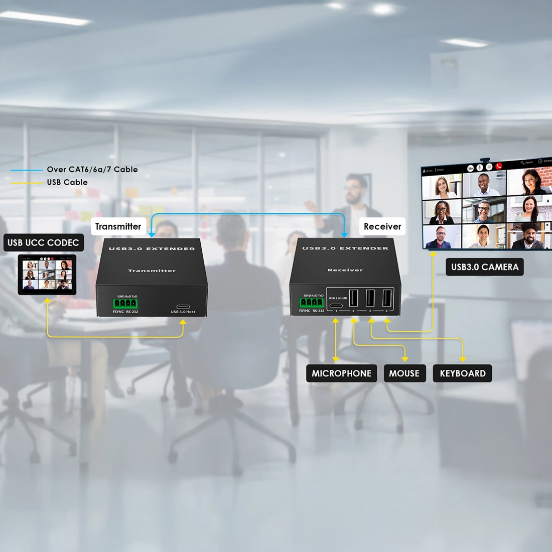 Zestaw nadajnik + odbiornik (TX + RX) – profesjonalne rozwiązanie do przedłużania USB 3.0