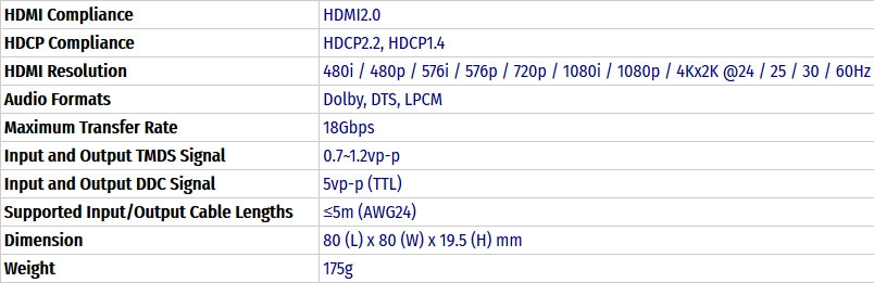 1. 1 kanałowy sygnał wejściowy HDMI jest konwertowany na 1 kanałowy sygnał audio HDMI + dźwięk SPDIF + dźwięk koncentryczny + dźwięk stereo R / L (dźwięk SPDIF i dźwięk koncentryczny nie może być jednocześnie emitowany, gdy używana jest funkcja ARC, wyjście stereo R / L nie jest dostępne)2. Obsługa standardu HDMI2.0, HDCP2.2, zgodnego z HDCP1.4