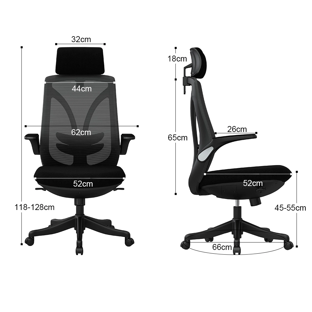 Fotel Spacetronik ARIAN-10 został wyposażony w regulowany zagłówek oraz składane podłokietniki, które można dostosować do swoich indywidualnych potrzeb. Zagłówek można regulować w zakresie 7 cm oraz pochylać pod kątem 30°, co zapewnia dodatkowe wsparcie dla szyi i głowy. Składane podłokietniki pozwalają na łatwe przesunięcie krzesła pod biurko lub zwiększenie przestrzeni roboczej, gdy podłokietniki nie są potrzebne.