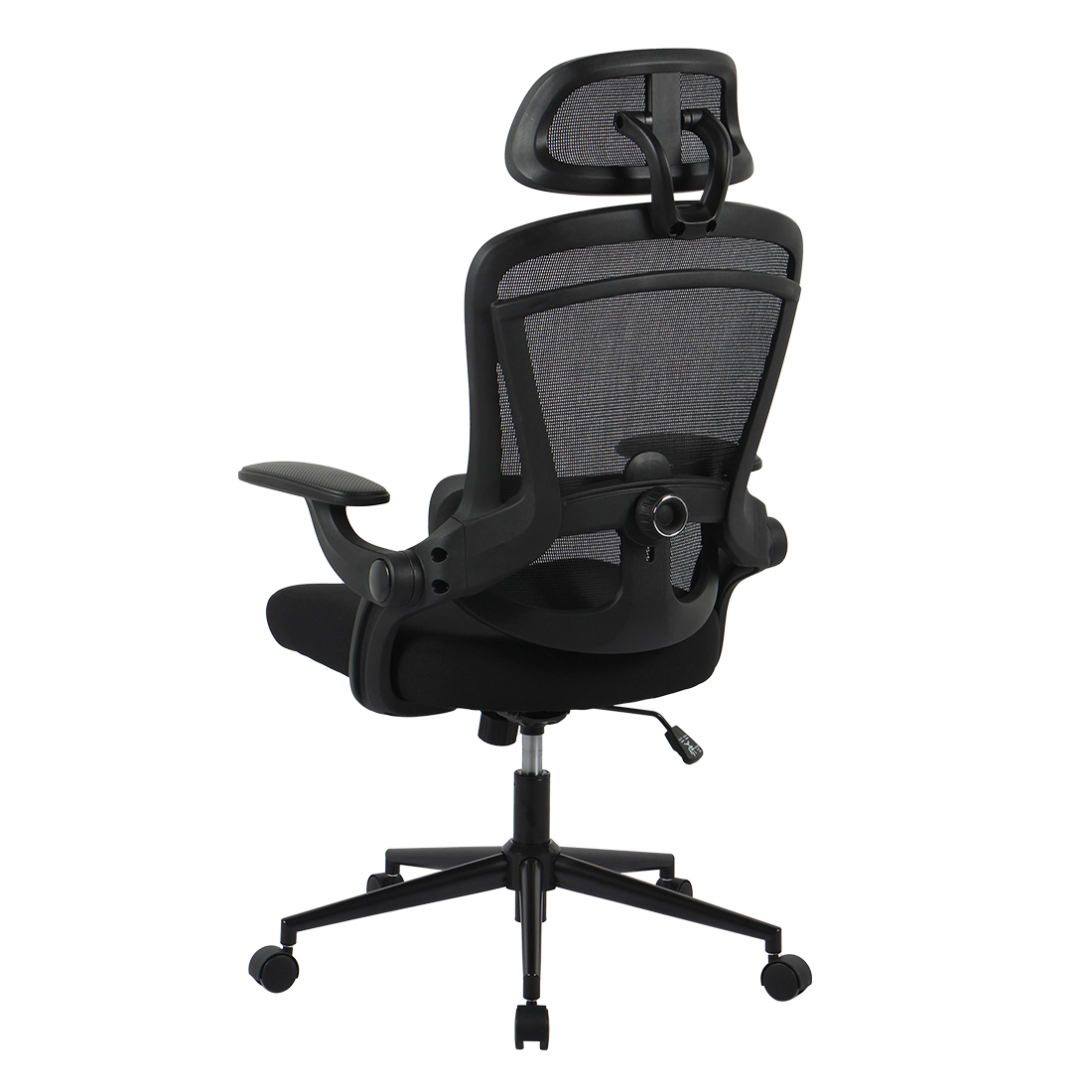 ergonomiczne krzesło do biurka, fotel biurowy z podparciem lędźwiowym, krzesło obrotowe z zagłówkiem, wygodne krzesło do pracy przy komputerze, regulowany fotel do home office, czarne krzesło do biura z siatką, fotel dla gracza z podłokietnikami, krzesło z regulacją wysokości i oparcia
