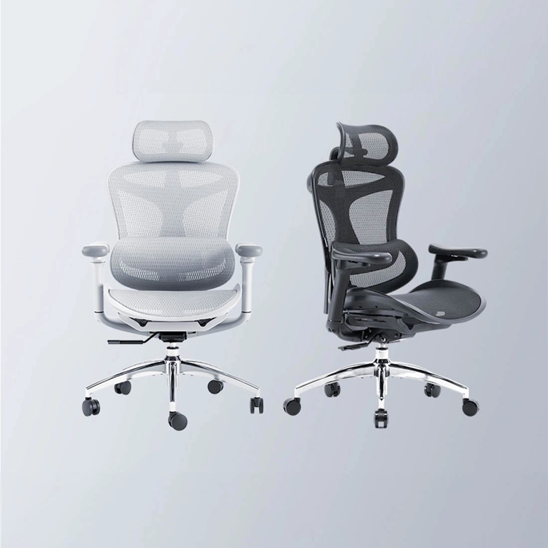 - Materiał: Siatkowe oparcie i siedzisko z miękkimi podłokietnikami pokrytymi powłoką PU,