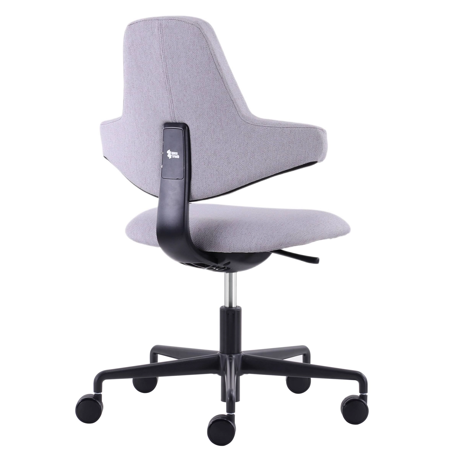 Stałe, wysokie oparcie zapewnia prawidłowe podparcie pleców w trakcie pracy. Kształt i wysokość dobrano tak, by nie ograniczać ruchów i jednocześnie dbać o wygodę odcinka lędźwiowego. Oparcie ma proporcje dobrane do wielogodzinnego siedzenia, bez przymusu sztywnej pozycji, ale z realnym wsparciem dla kręgosłupa. Sprawdzi się zarówno przy pracy biurowej, jak i podczas spotkań czy analiz wymagających skupienia.