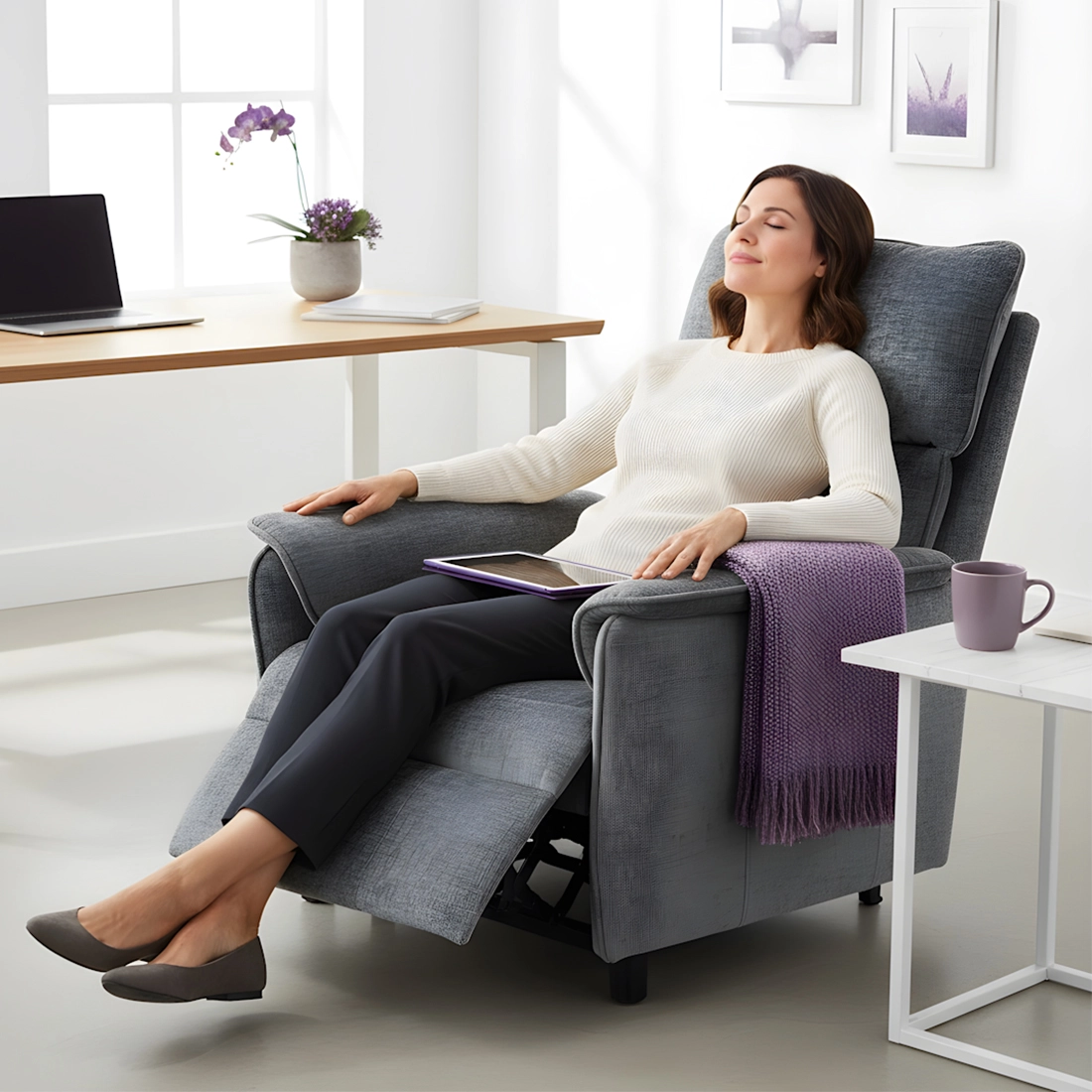 Niezależnie od tego, czy przeglądasz wiadomości na telefonie, czytasz książkę, oglądasz ulubiony serial czy ucinasz sobie krótką drzemkę, Flax 03 idealnie dopasuje się do Twojej aktywności. Płynna, elektryczna regulacja pozwala precyzyjnie ustawić kąt nachylenia: