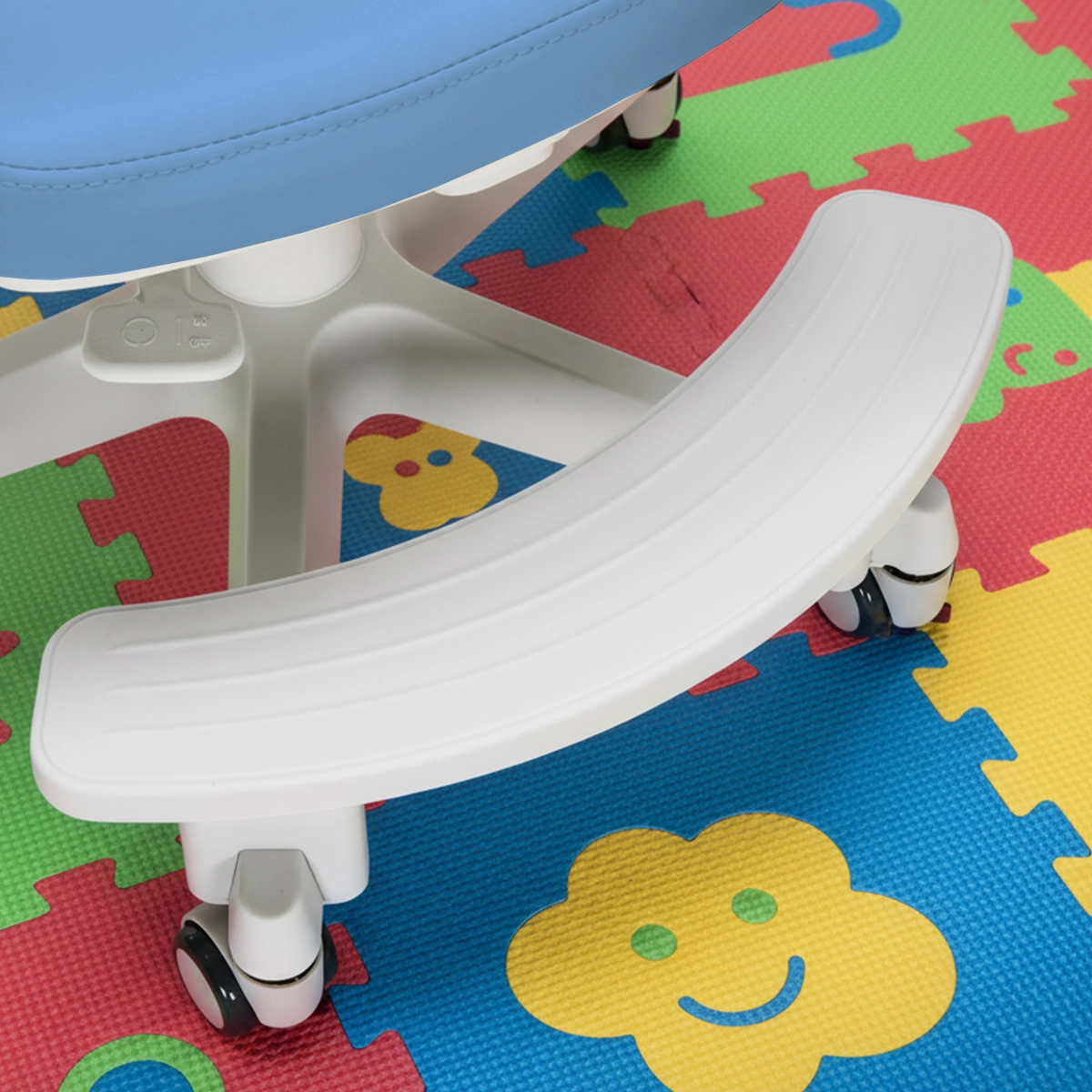 Wszystkie elementy wykonano z trwałych i bezpiecznych materiałów - od oparcia, przez solidną podstawę i ramę z wysokiej jakości tworzywa sztucznego. Zaokrąglone krawędzie, mobilne kółka i wygodny podnóżek chronią Twoje dziecko podczas codziennego użytkowania.