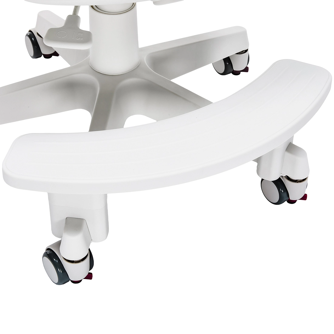 Wszystkie elementy wykonano z trwałych i bezpiecznych materiałów - od oparcia, przez solidną podstawę i ramę z wysokiej jakości tworzywa sztucznego. Zaokrąglone krawędzie, mobilne kółka i wygodny podnóżek chronią Twoje dziecko podczas codziennego użytkowania.