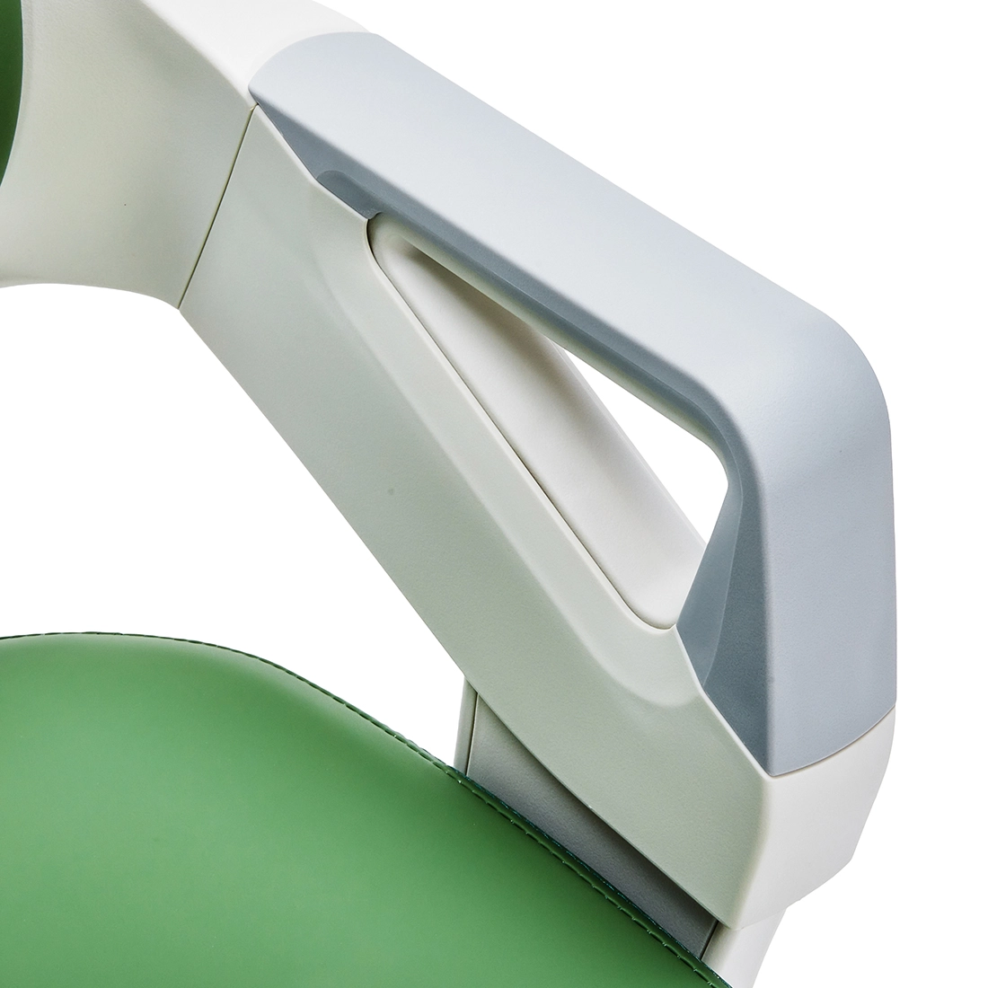 Połączenie zielonej tapicerki z szarą podstawą i ramą sprawia, że krzesło świetnie wpisuje się w wystrój pokoju dziecka. Jest uniwersalne – pasuje zarówno dla chłopca, jak i dziewczynki.