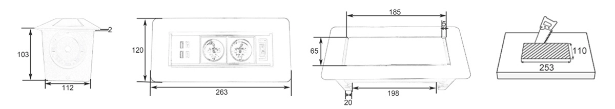 -Łatwa instalacja: Prosty montaż poprzez wycięcie otworu w blacie i umieszczenie gniazda w odpowiednim miejscu.