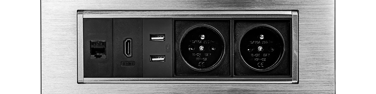 Multifunkcyjny madiaport to idealne rozwiązanie do nowoczesnych przestrzeni roboczych i domowych. Gniazdo HDMI umożliwia szybkie podłączenie monitorów i projektorów. Gniazdo RJ45 zapewnia stabilne połączenie z siecią internetową, kluczowe dla pracy zdalnej i wideokonferencji. Dwa dedykowane porty USB do ładowania pozwala na wygodne ładowanie urządzeń mobilnych.