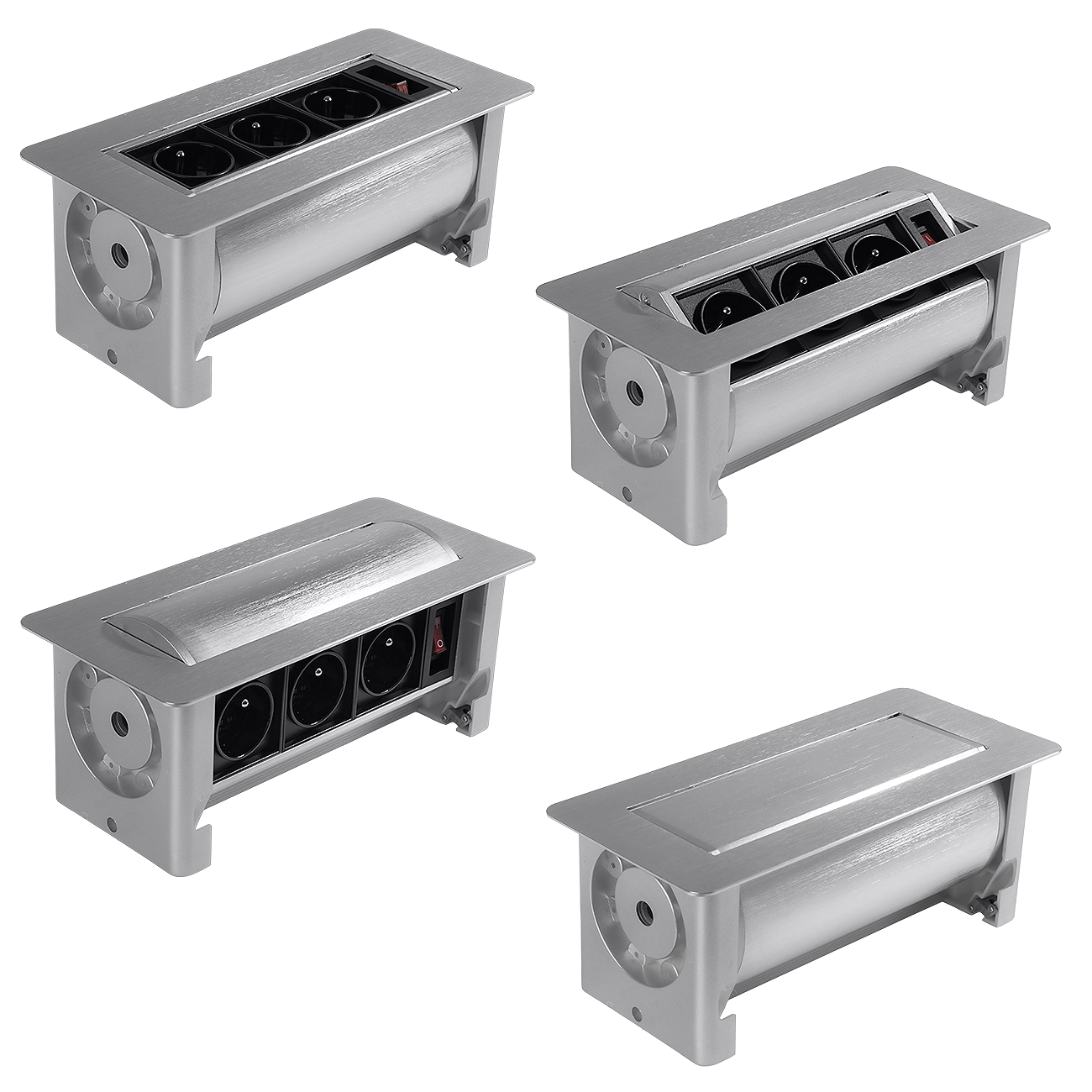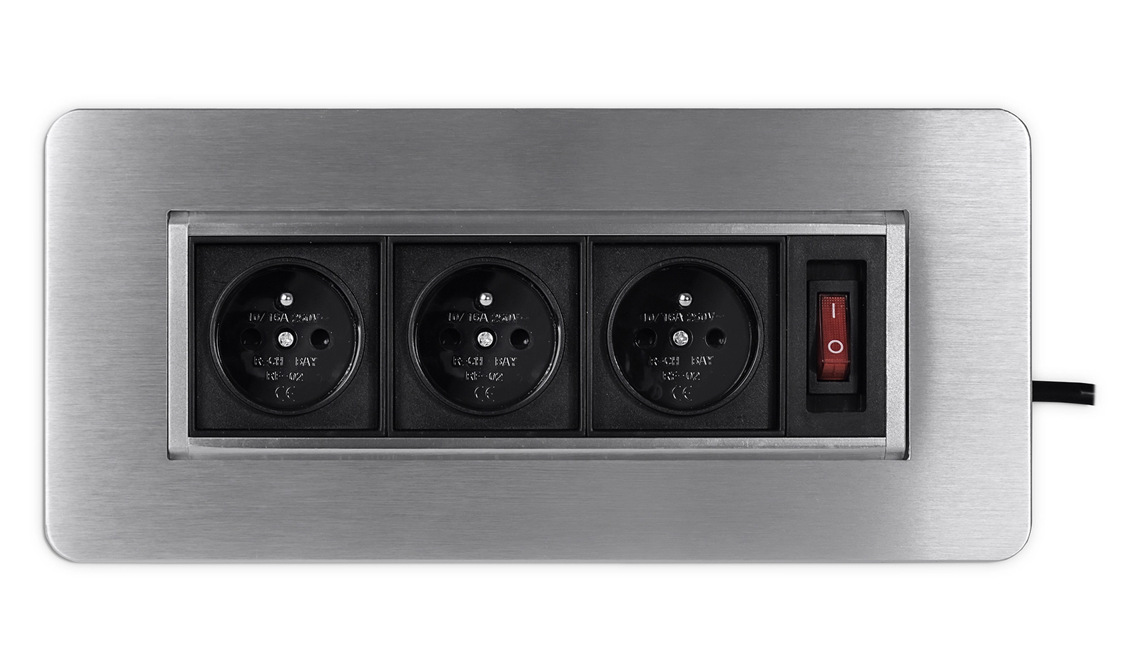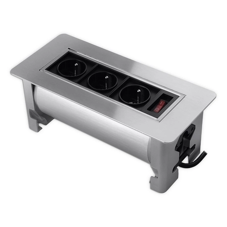 • Stylowy mediaport do montażu w blacie, obrotowy. Posiada 3 gniazda elektryczne oraz przełącznik zasilania. Długość kabla 1,5 m. W kolorze srebrnym