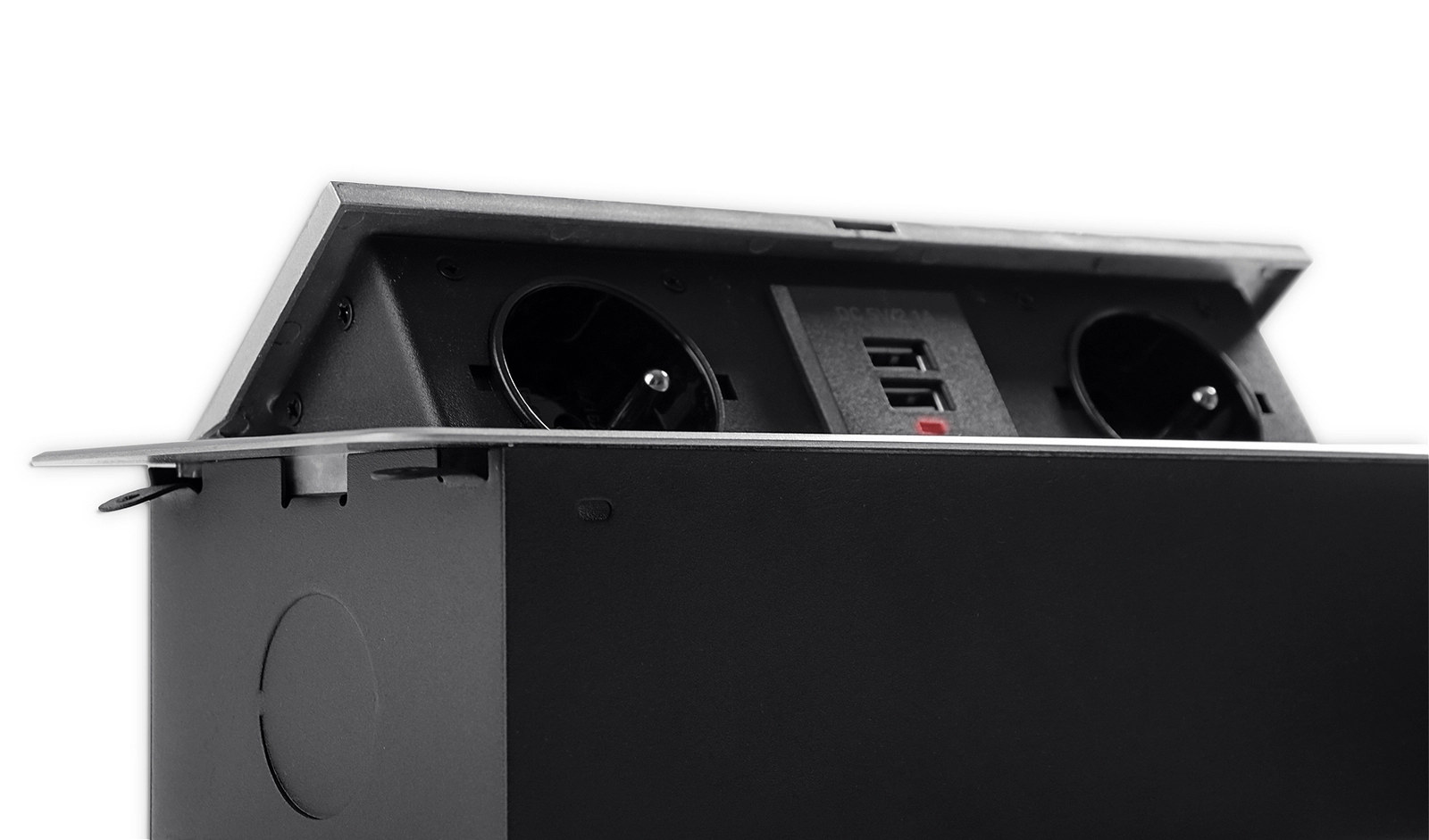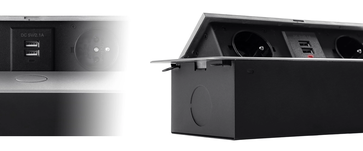 -Łatwa instalacja: Prosty montaż poprzez wycięcie otworu w blacie i umieszczenie gniazda w odpowiednim miejscu.
