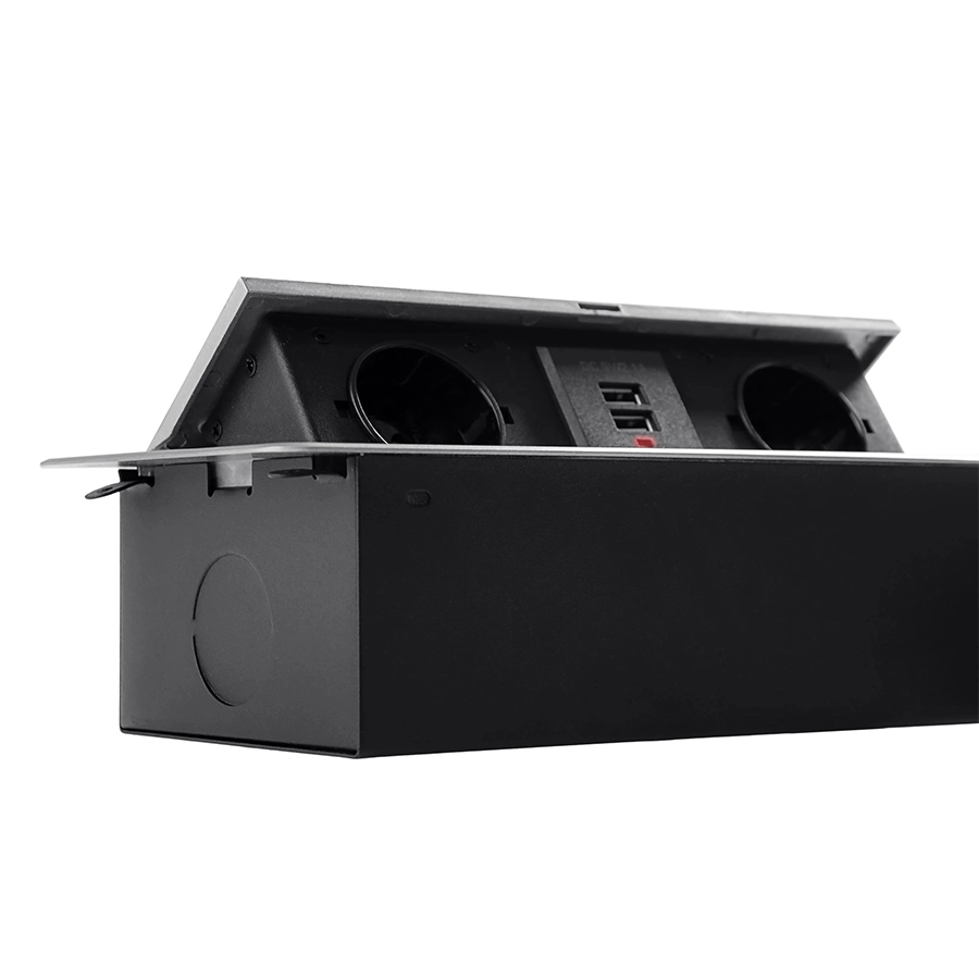 -Łatwa instalacja: Prosty montaż poprzez wycięcie otworu w blacie i umieszczenie gniazda w odpowiednim miejscu.
