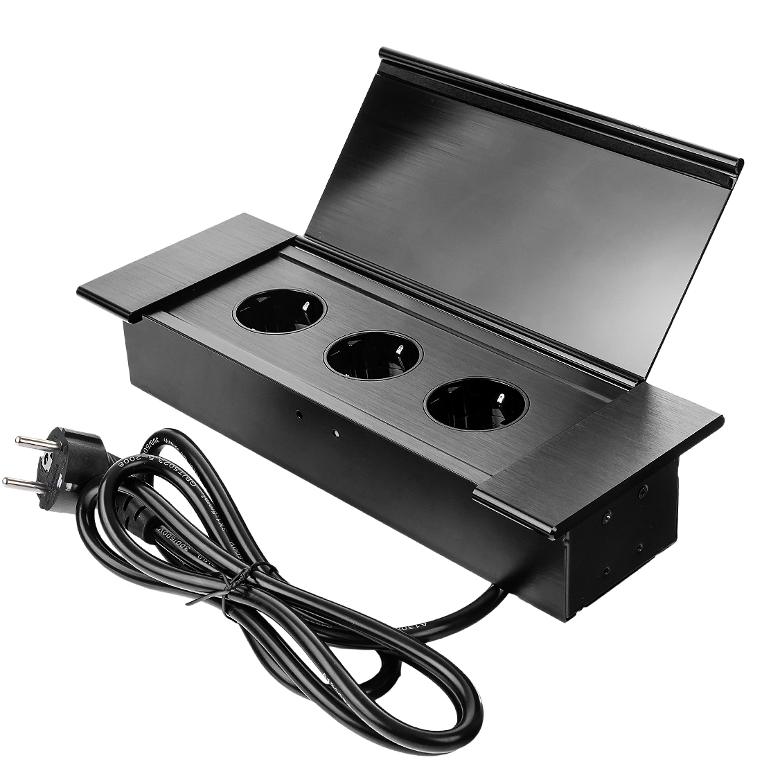 Czy poszukujesz idealnego rozwiązania, które połączy elegancję i funkcjonalność w Twoim biurze, salonie sprzedaży, sali konferencyjnej lub domu? Gniazdo meblowe otwierane Spacetronik to wszechstronny produkt, który sprosta każdemu wyzwaniu. Trzy gniazda schuko doskonale sprawdzą się jako listwa zasilająca na blacie biurka.