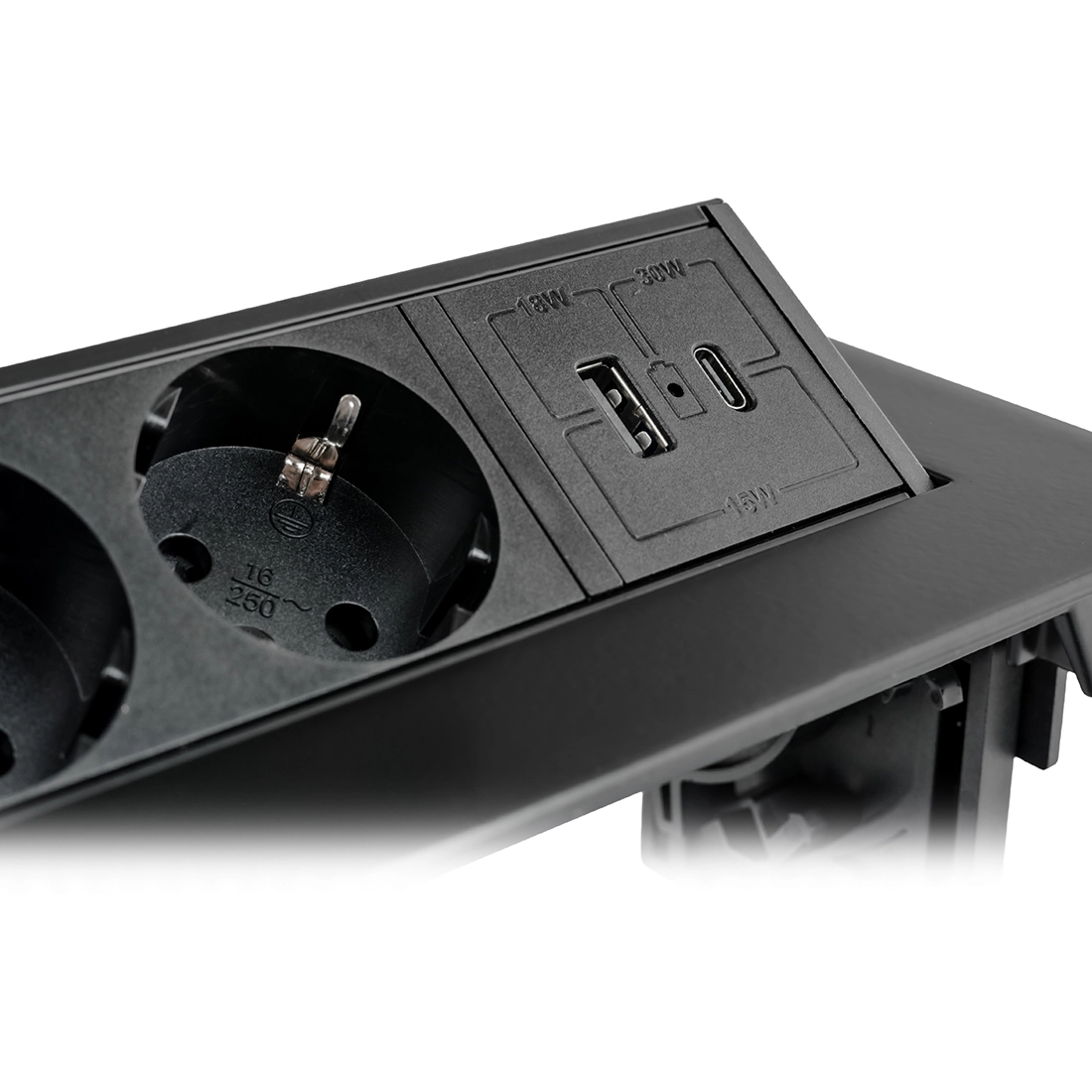 Czy poszukujesz idealnego rozwiązania, które połączy elegancję i funkcjonalność w Twoim biurze, salonie sprzedaży, sali konferencyjnej lub domu? Gniazdo blatowe zasuwane Spacetronik to wszechstronny produkt, który sprosta każdemu wyzwaniu. Dzięki nowoczesnemu designowi i portom ładowania USB i USB-C nasze gniazda meblowe zapewnią wygodę i estetykę w każdej przestrzeni pracy.