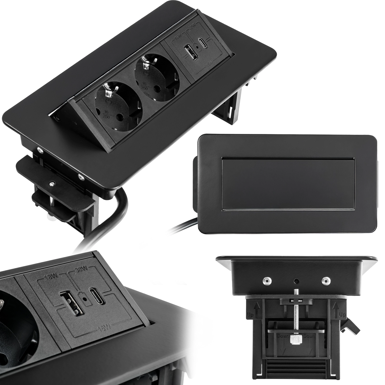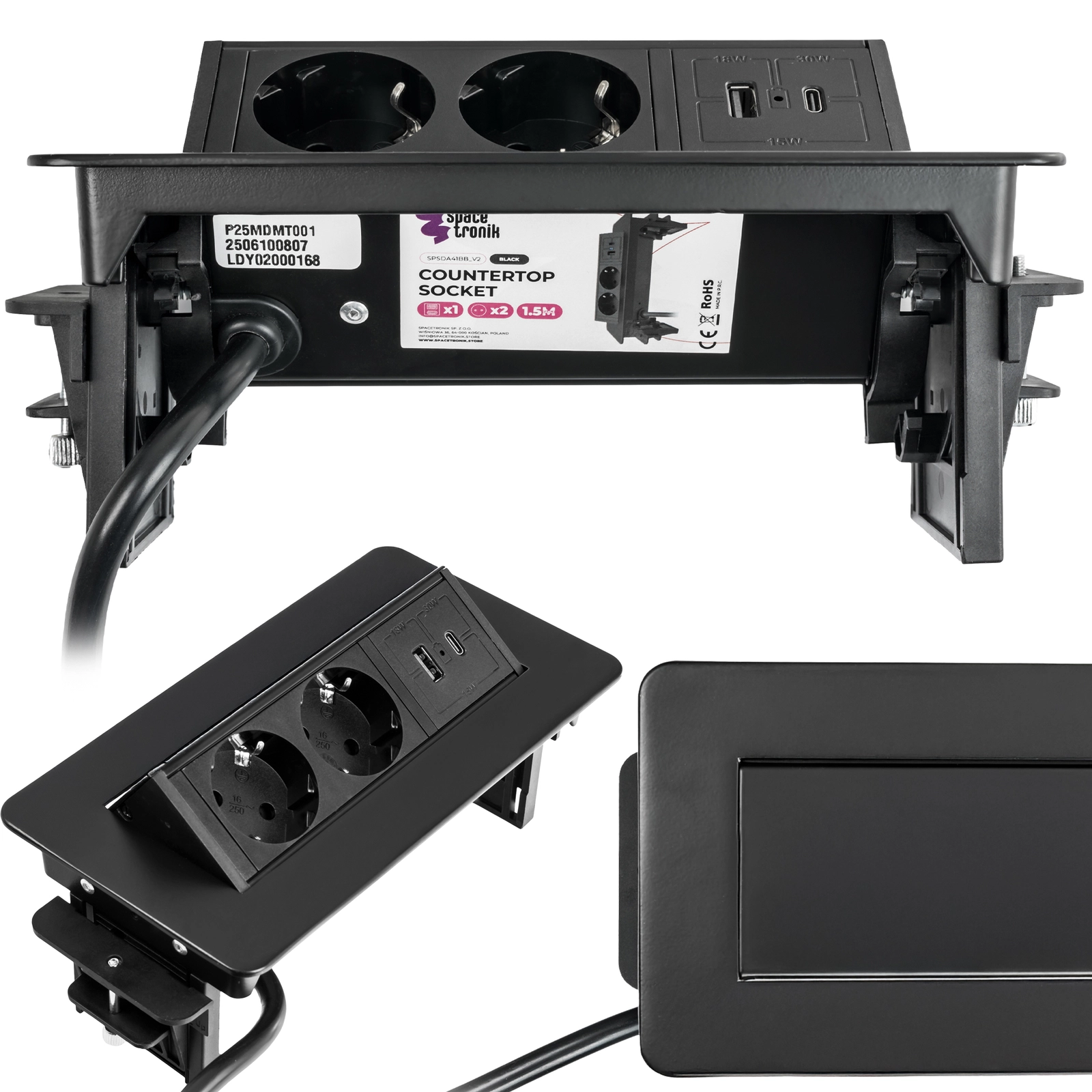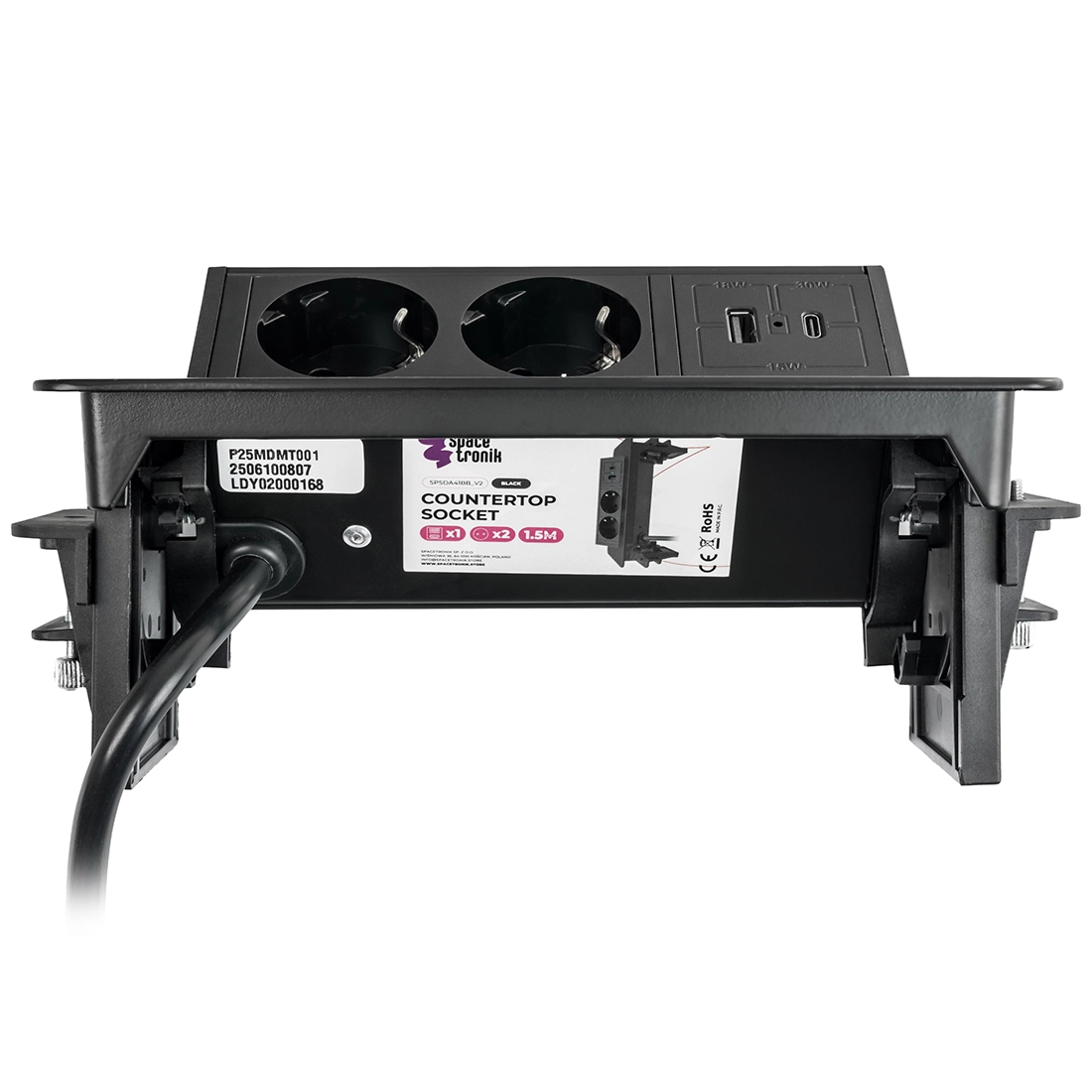Gniazdo blatowe wpuszczane obrotowe Spacetronik SPSDA41BB V2 czarne - Funkcjonalność i Elegancja