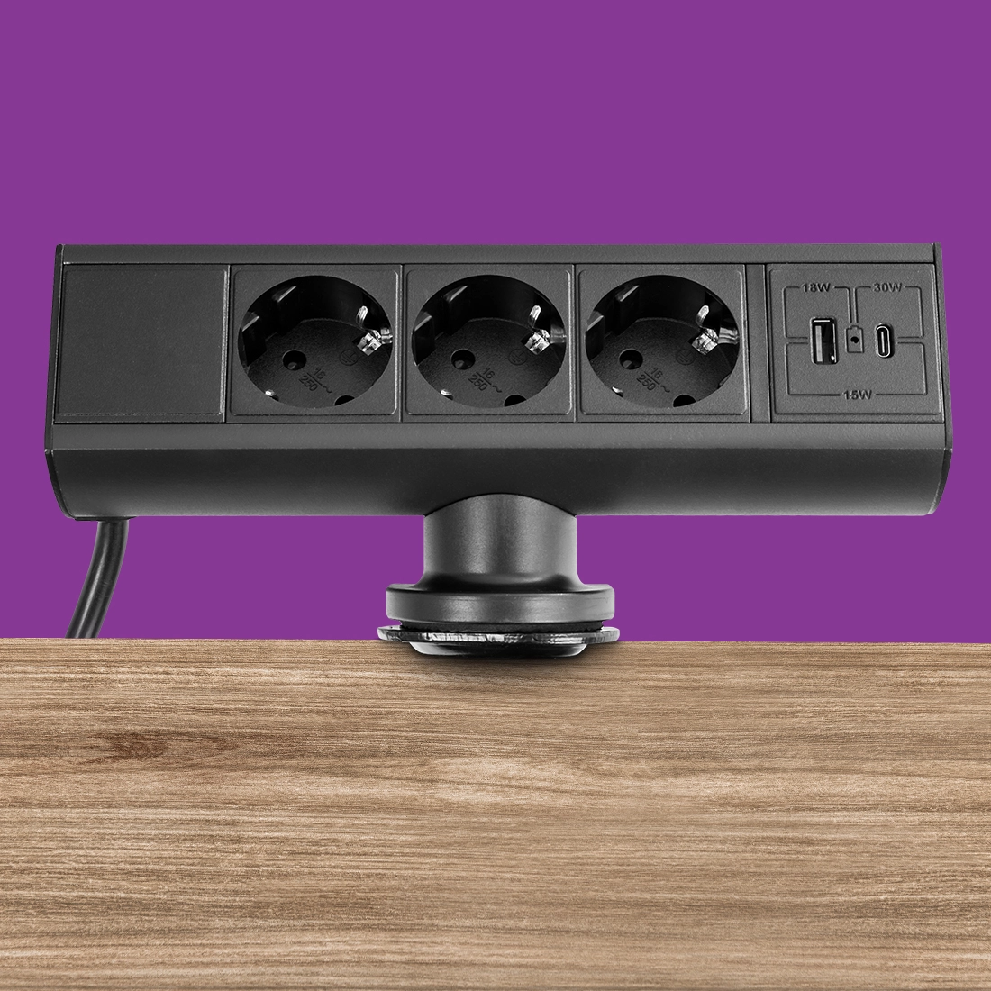 Podblatowe gniazdo meblowe, dyskretne gniazdo podblatowe, funkcjonalne gniazdo meblowe, nowoczesne gniazdo do blatu
