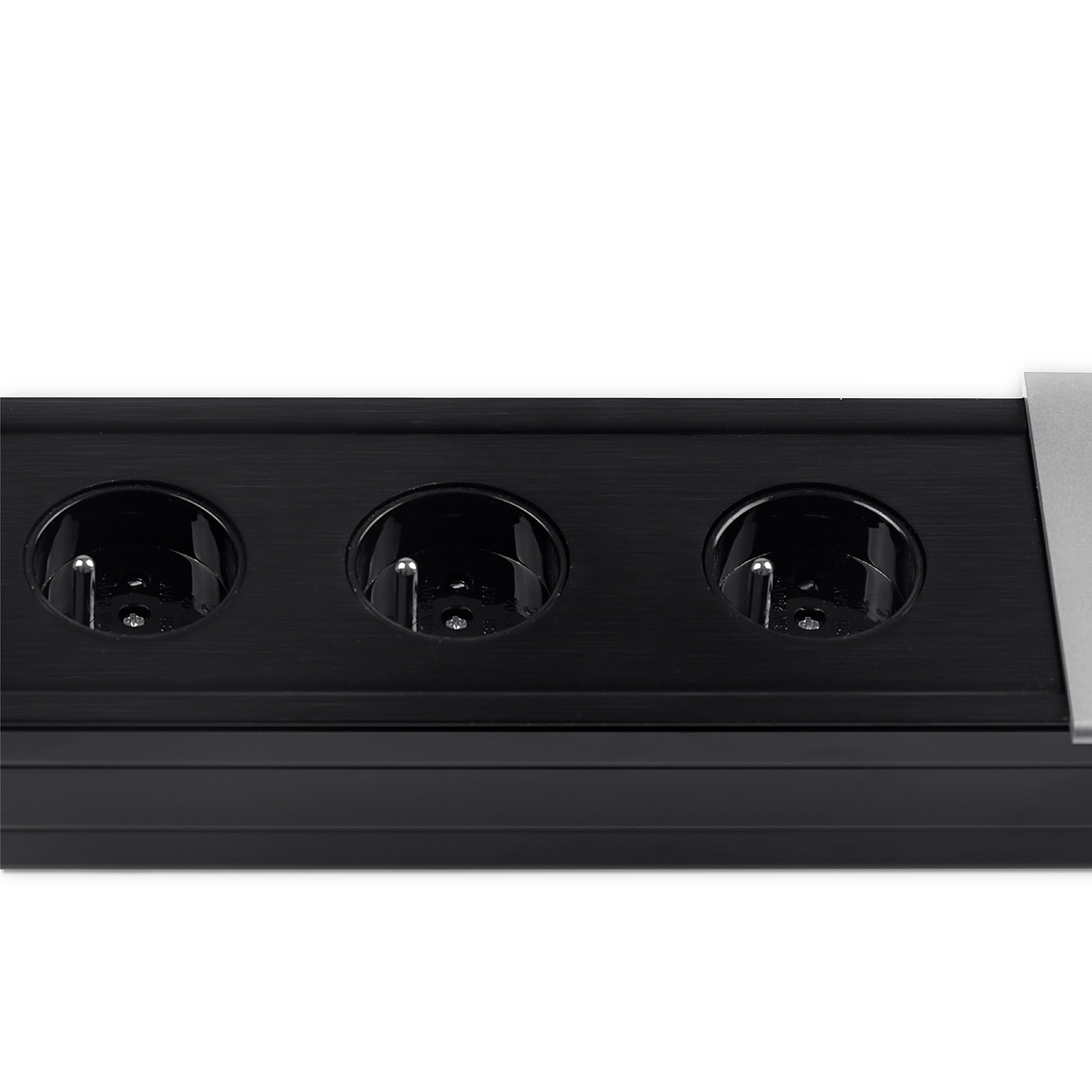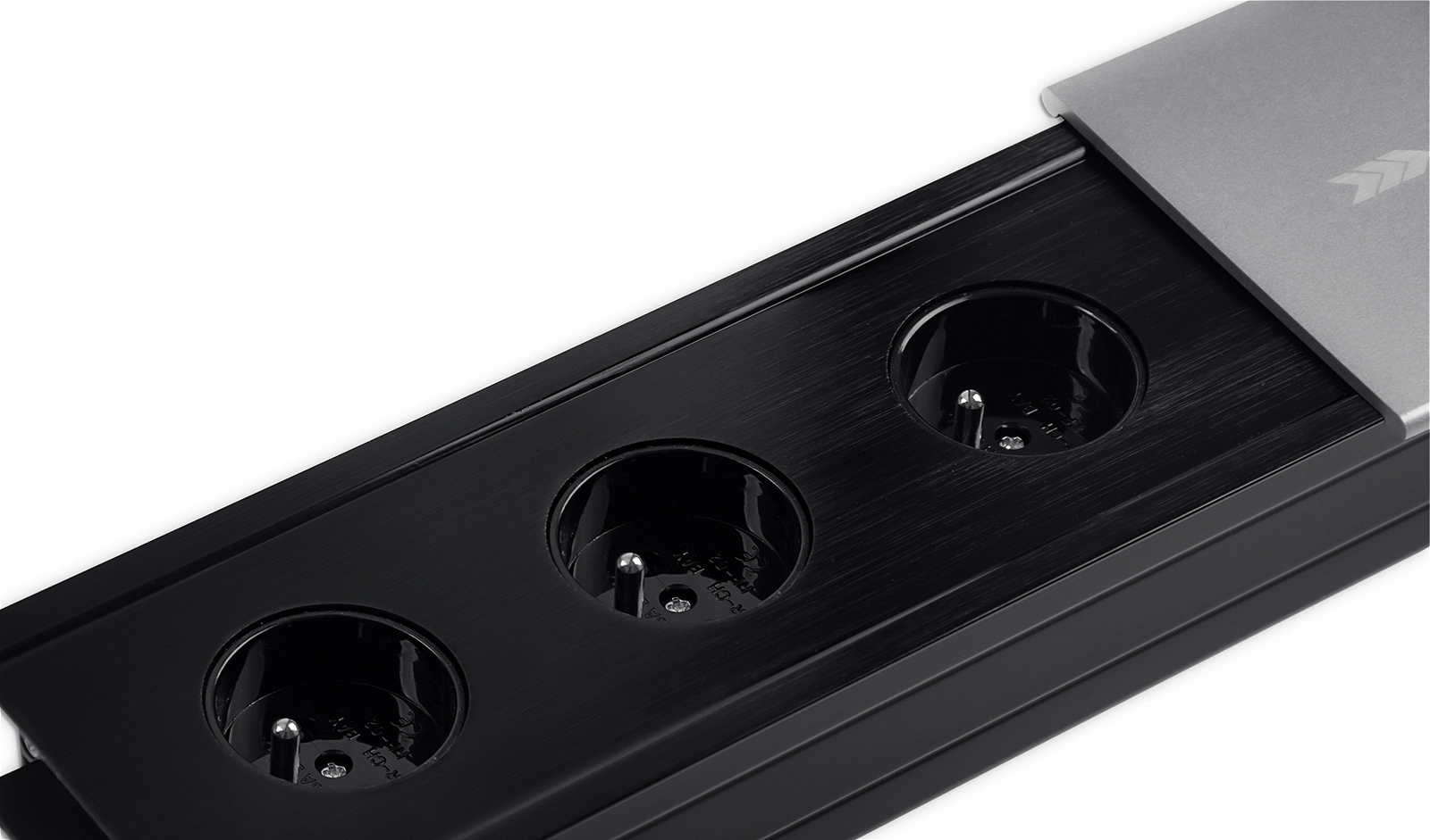 • Elegancki mediaport do montażu w blacie, zasuwany. Posiada 3 gniazda elektryczne. Długość kabla 1,5 m. W kolorze srebrnym.