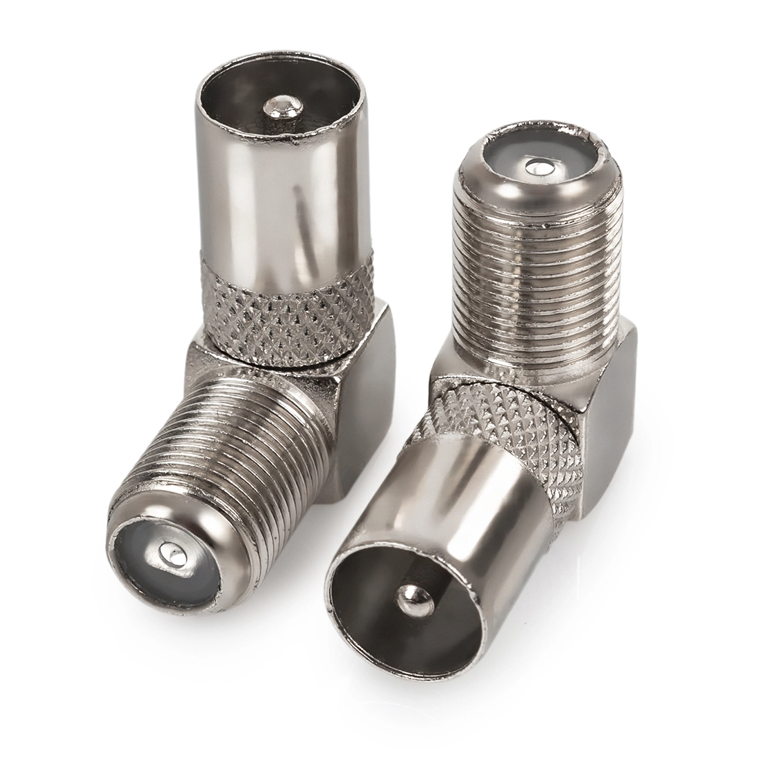 Przejściówka gniazdo typu F - wtyk TV IEC kątowy 90 stopni Spacetronik TV-IECM0190
