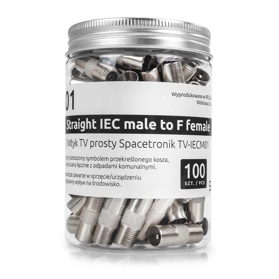 Przejściówka gniazdo typu F - wtyk TV IEC prosty Spacetronik TV-IECM01