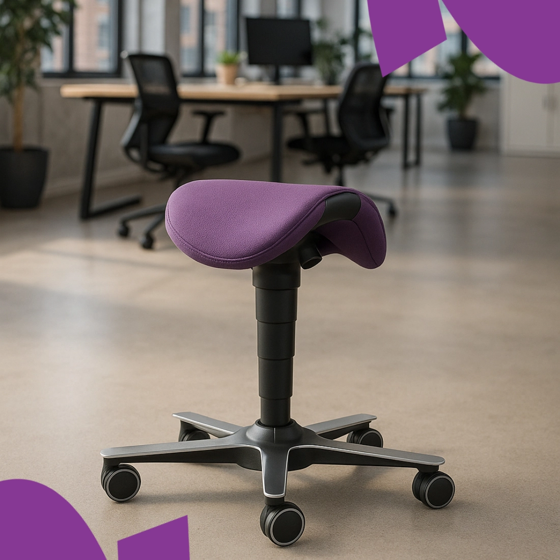 Krzesło siodłowe SORA to aktywny taboret biurowy na kółkach z balansującym siedziskiem. Dzięki mechanizmowi ErgoBalance wspiera zdrową postawę i umożliwia swobodne mikroruchy w trakcie pracy przy komputerze. Miękka, fioletowa tapicerka Gabriel Mozart™ oraz kompaktowa forma bez podłokietników sprawiają, że sprawdzi się zarówno w gabinecie, jak i w domowym biurze.