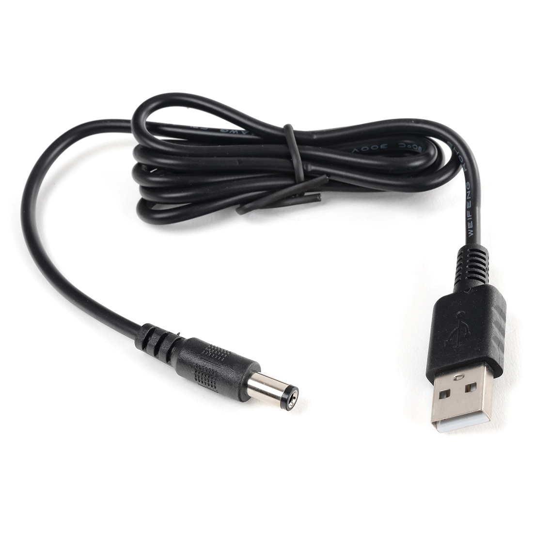 Kabel USB - wtyk DC 2.1/5.5mm. Do zasilania urządzeń z gniazdem DC. Prąd 5V, maksymalnie 1A.