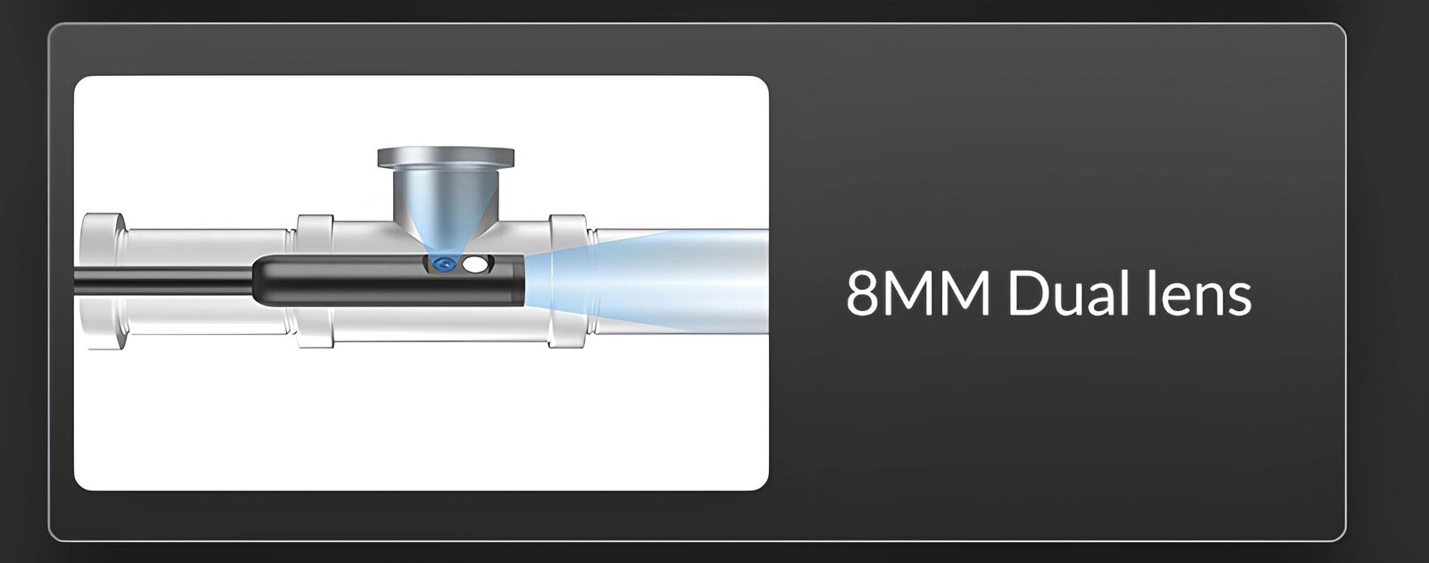 Wąska końcówka o średnicy 8mm pozwoli Ci przedostać się nawet w najmniejsze, najtrudniej dostępne zakamarki, a kamera Dual Lens zapewnia Ci widok zarówno od frontu jak i od góry urządzenia. Do tego głębia ogniskowa w przedziale 2-10cm. To wszystko przekłada się na szeroki kąt widzenia. Możesz czuć się pewnie, że nic istotnego nie ukryje się przed Twoim wzrokiem. Natomiast 2 dołączone do zestawu końcówki (jedna z haczykiem i jedna z magnesem) jeszcze zwiększą funkcjonalność urządzenia. Dzięki nim dasz radę np. wyciągnąć ulubiony pierścionek, który zapodział się w rurze odpływowej.