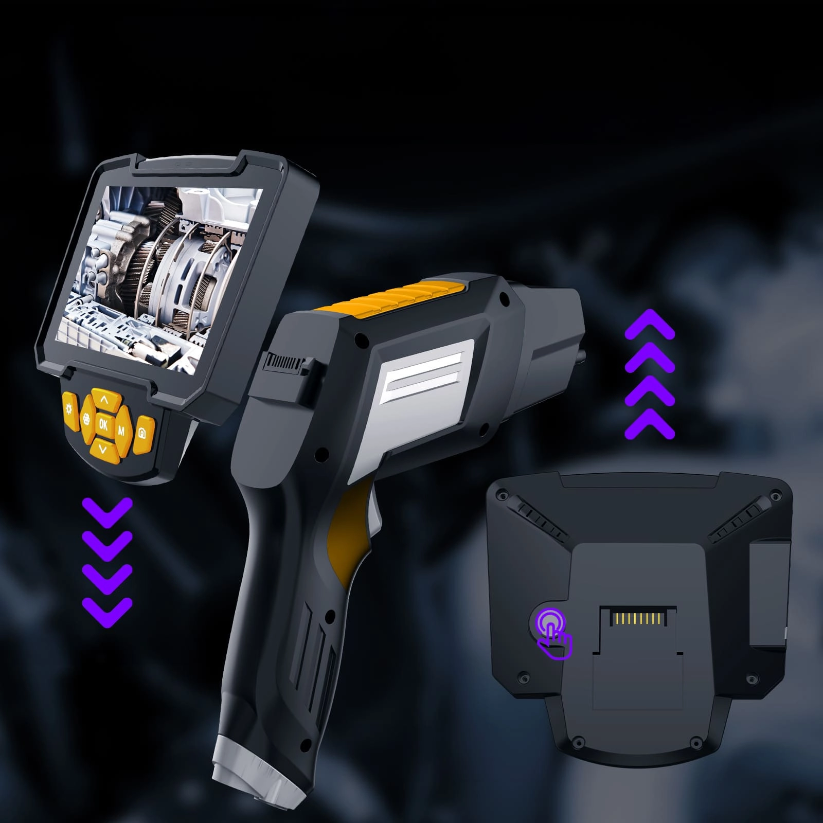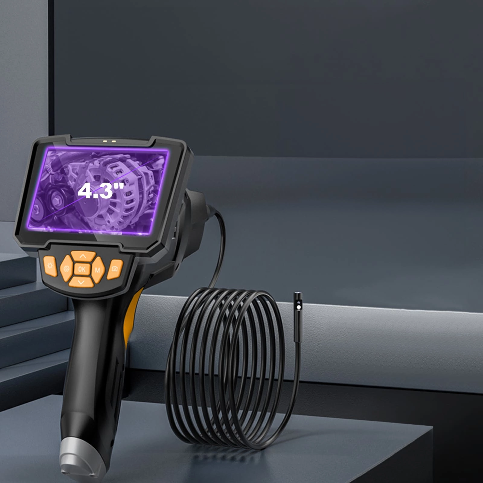 Endoskop SPU-E03_0050 został wyposażony w ekran o średnicy 4,3 zbudowany w taki sposób byś bez problemu mógł odłączyć go od uchwytu. Natomiast kamera została wyposażona w 2 obiektywy. Jeden znajdujący się z przodu kamery i jeden na górze. Kamera została wyposażona w 6 świateł LED, których moc możesz ustawić na jeden z trybów: 100%, 80%, 60%. Dodatkowo do kamery zostały dołączone 2 wymienne końcówki (Hak i Magnes). Dzięki nim będziesz w stanie np. wyłowić swój ulubiony pierścionek z rury odprowadzającej wodę. Kamera ma możliwość ustawienia zooma na jednym z predefiniowanych profili: 1x, 1.3x, 1.5x.